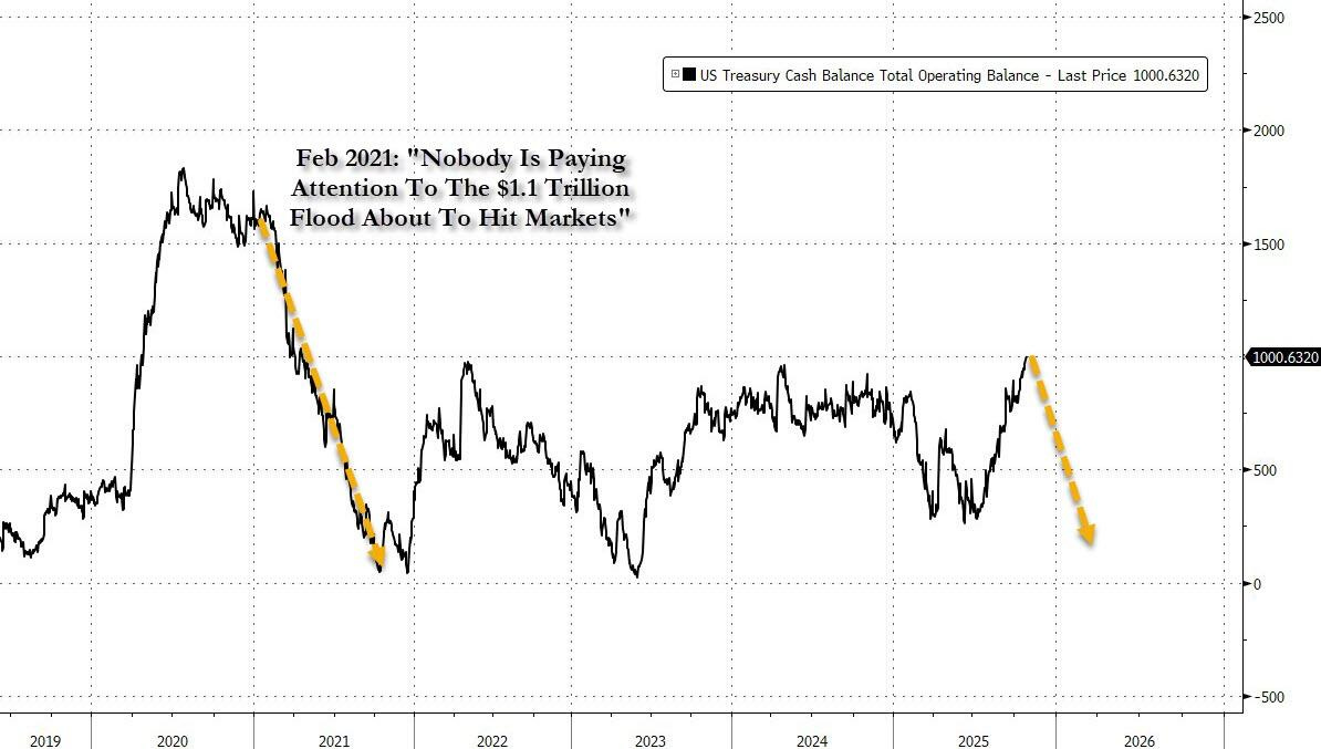 財政部 TGA(國庫總帳戶)膨脹至 1 兆美元,吸走市場現金,實質效果等同「加息」。