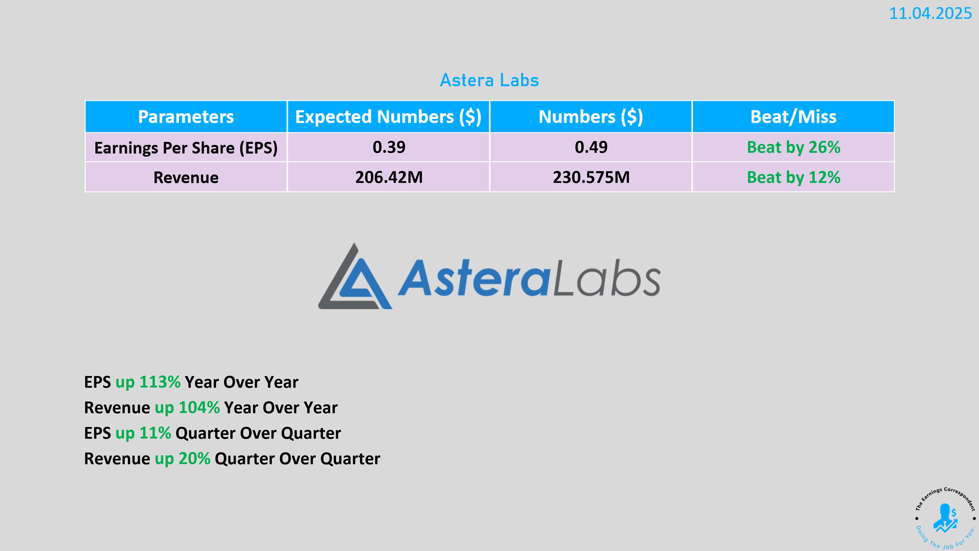 調整後 EPS $0.49,年增 113%(預期 $0.39)。