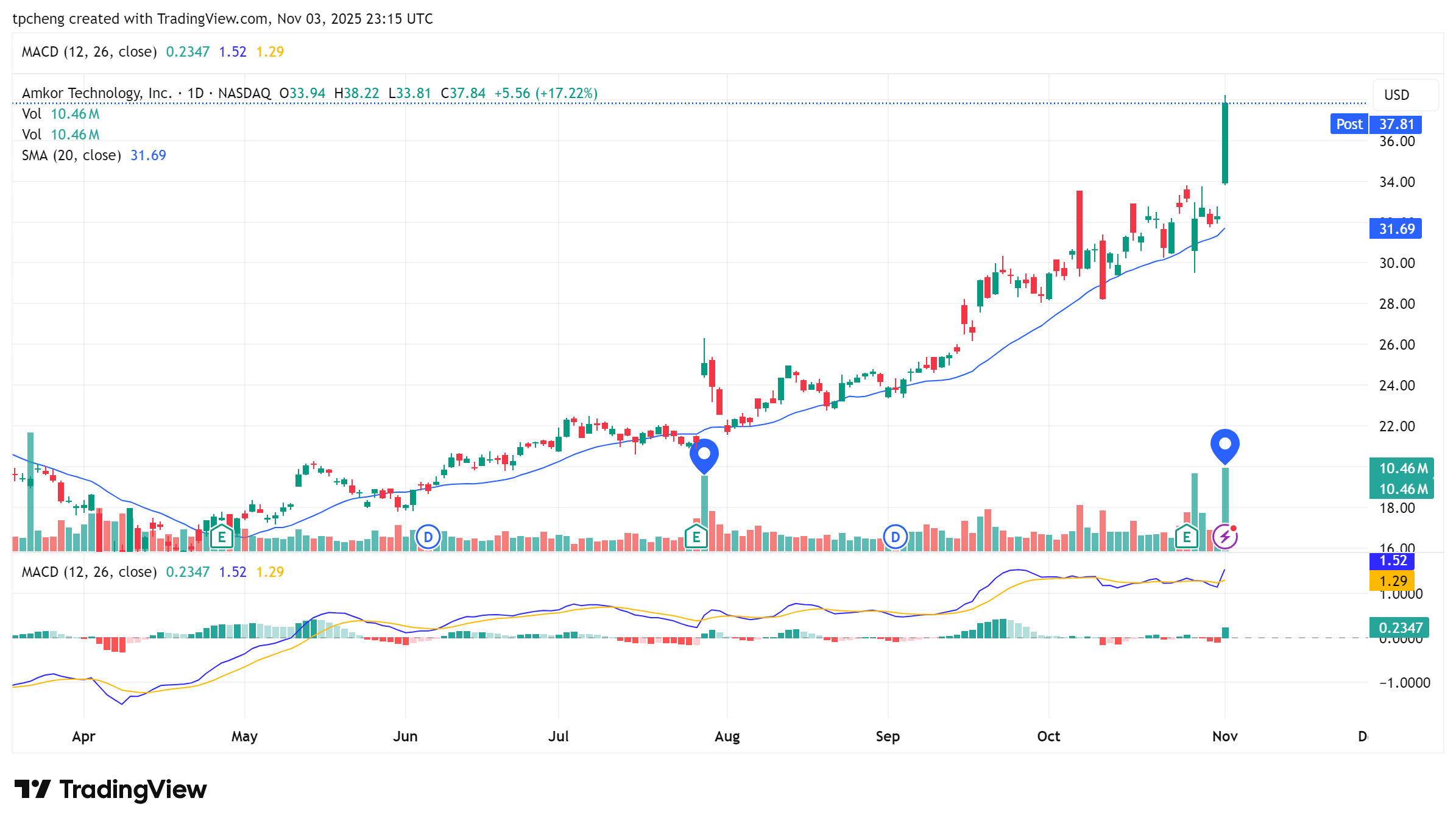 Amkor 等公司受惠先進封裝(如 CoWoS、Fan-Out)需求。