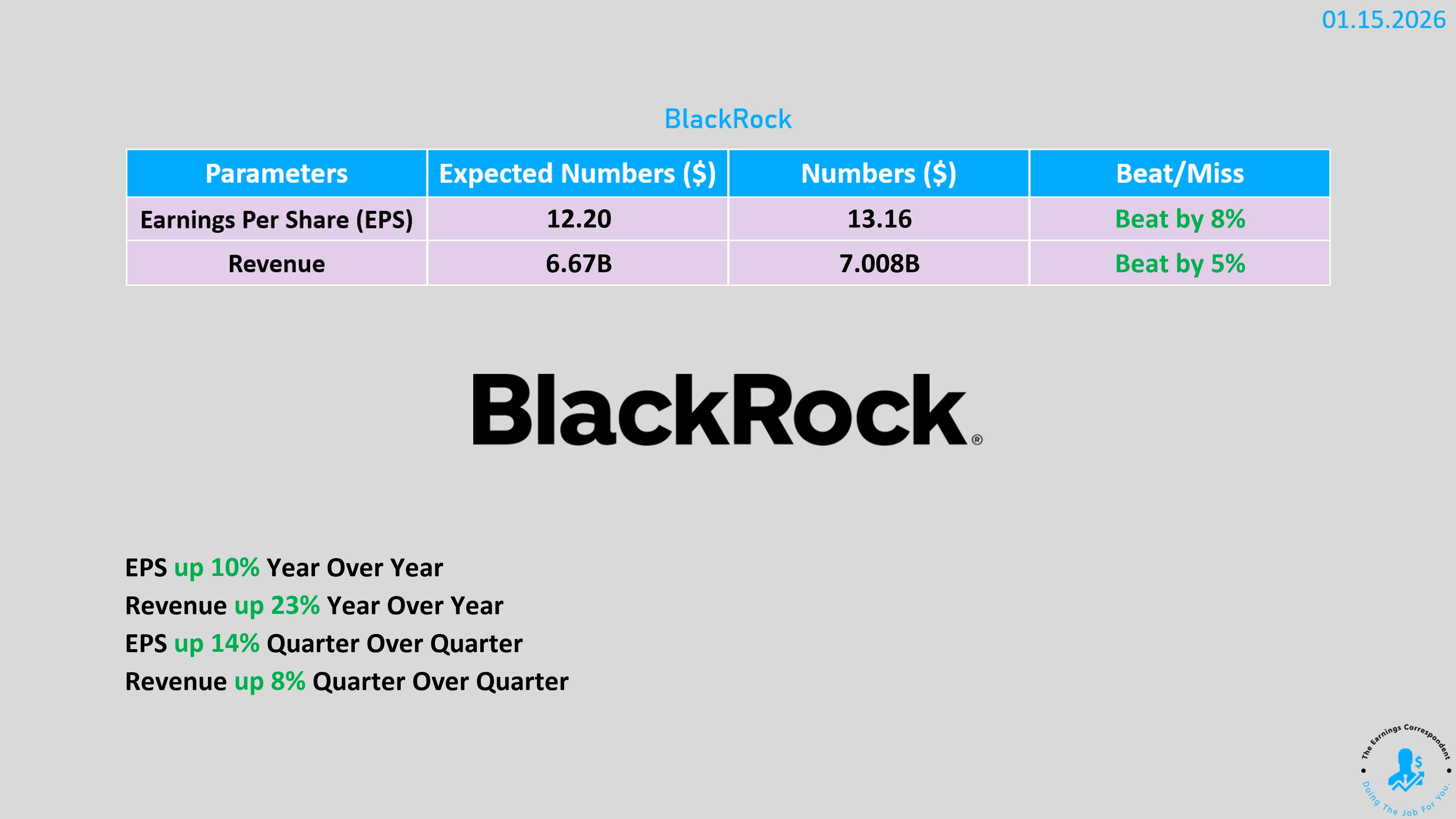 資產管理龍頭:貝萊德(BlackRock)資產規模在 2025 年底達到創紀錄的 14 兆美元,股價上漲 5.9% 。