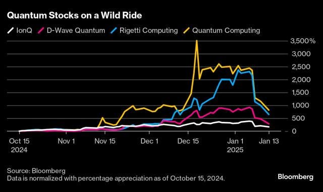 除了微軟與Google,IBM也是量子計算領域的先驅之一,其研究與投資已持續數十年。此外,還有許多規模較小的公司專注於量子計算機及其相關技術(如軟體與算法)的開發。目前,已有數家量子計算相關公司上市,包括IonQ(IONQ)、Quantum Computing(QUBT)、D-Wave Quantum(QBTS)和Rigetti Computing(RGTI)。