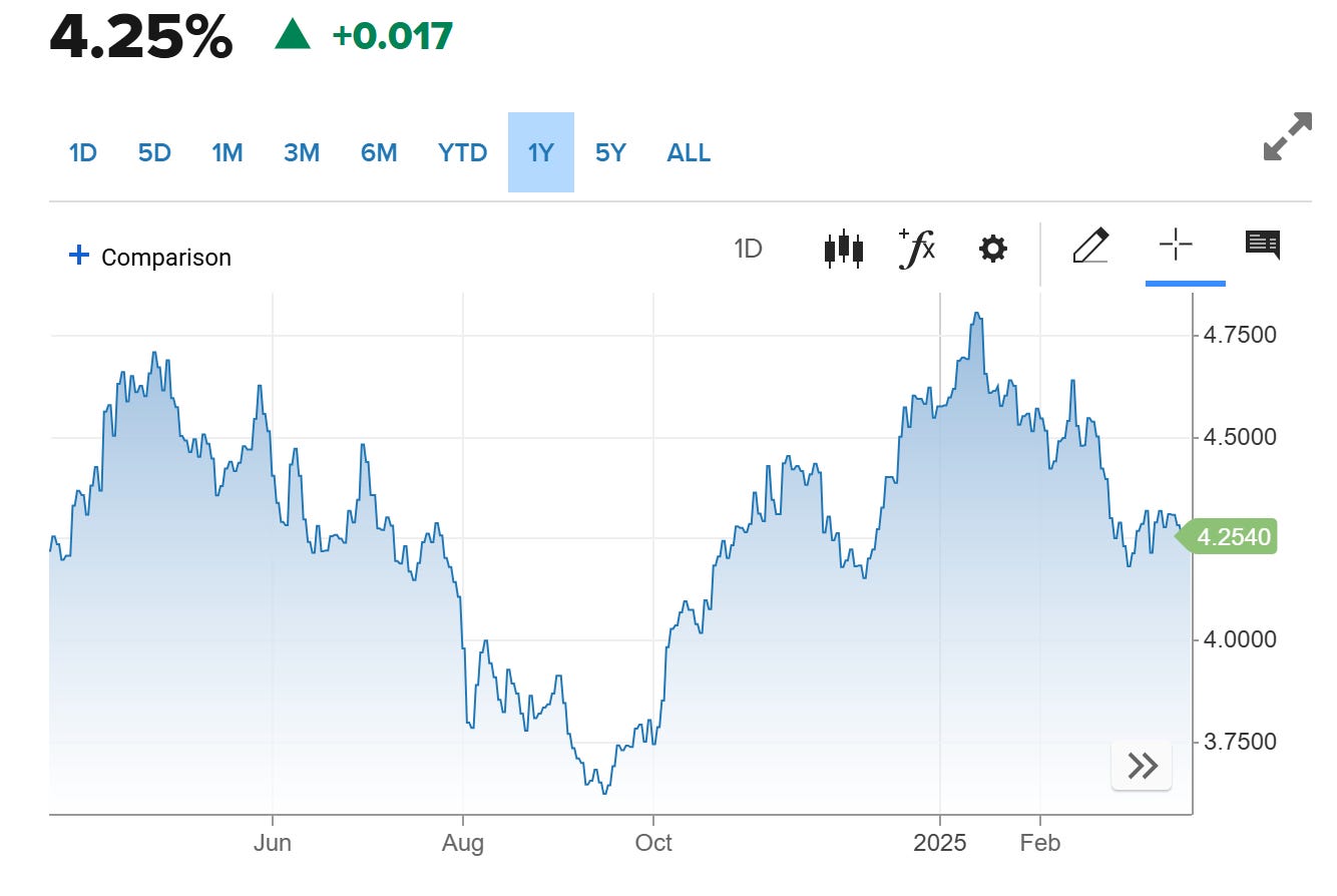美國政府目標是壓低美債收益率至4%以下,透過股市下跌、引導資金流向債市。