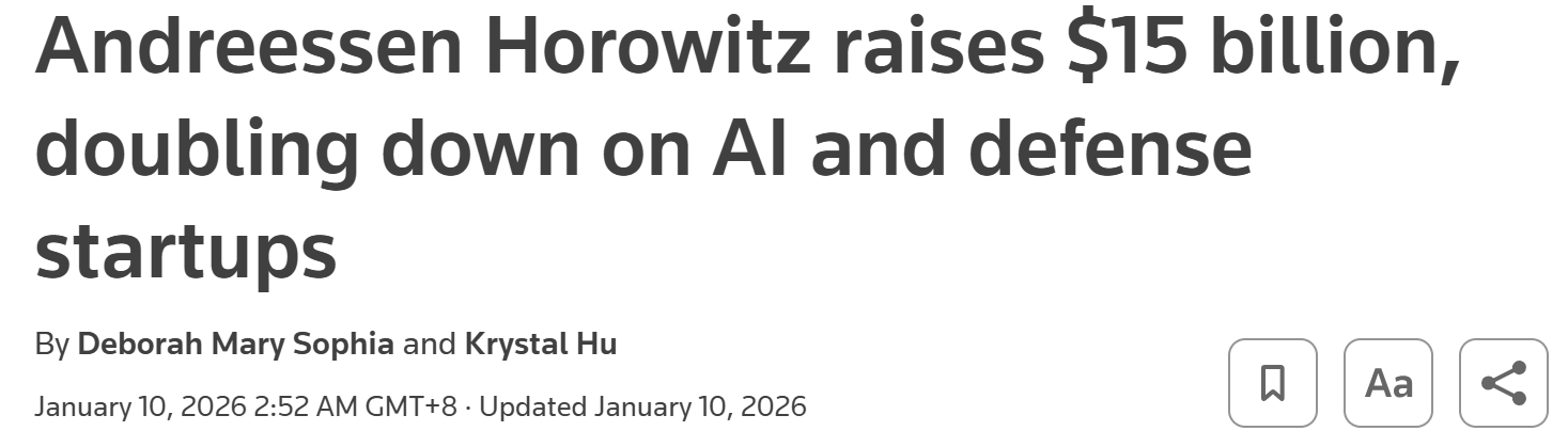 Andreessen Horowitz (a16z) 宣布募集高達 150 億美元的新基金。這不僅僅是一個數字,它標誌著創投產業正在經歷類似於資產管理業的「指數化」轉型。