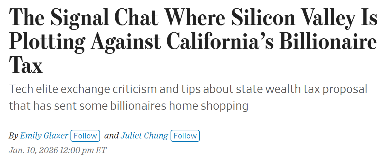 加州即將於 2026 年 11 月公投的「億萬富翁稅法案」(Billionaire Tax Act),引發的矽谷資本大逃亡現象。