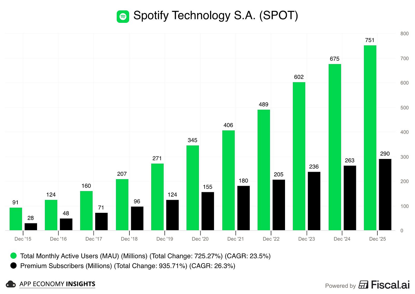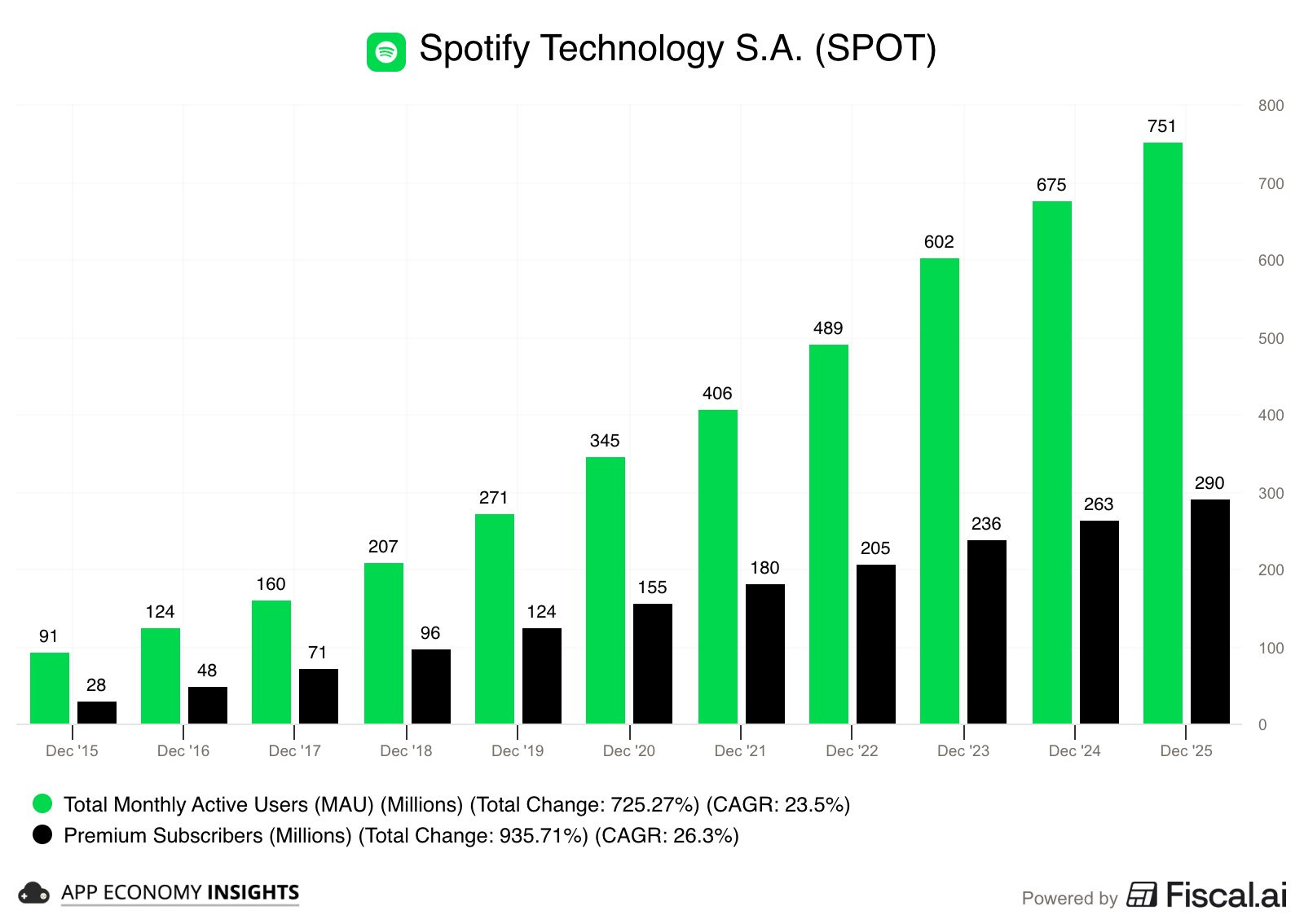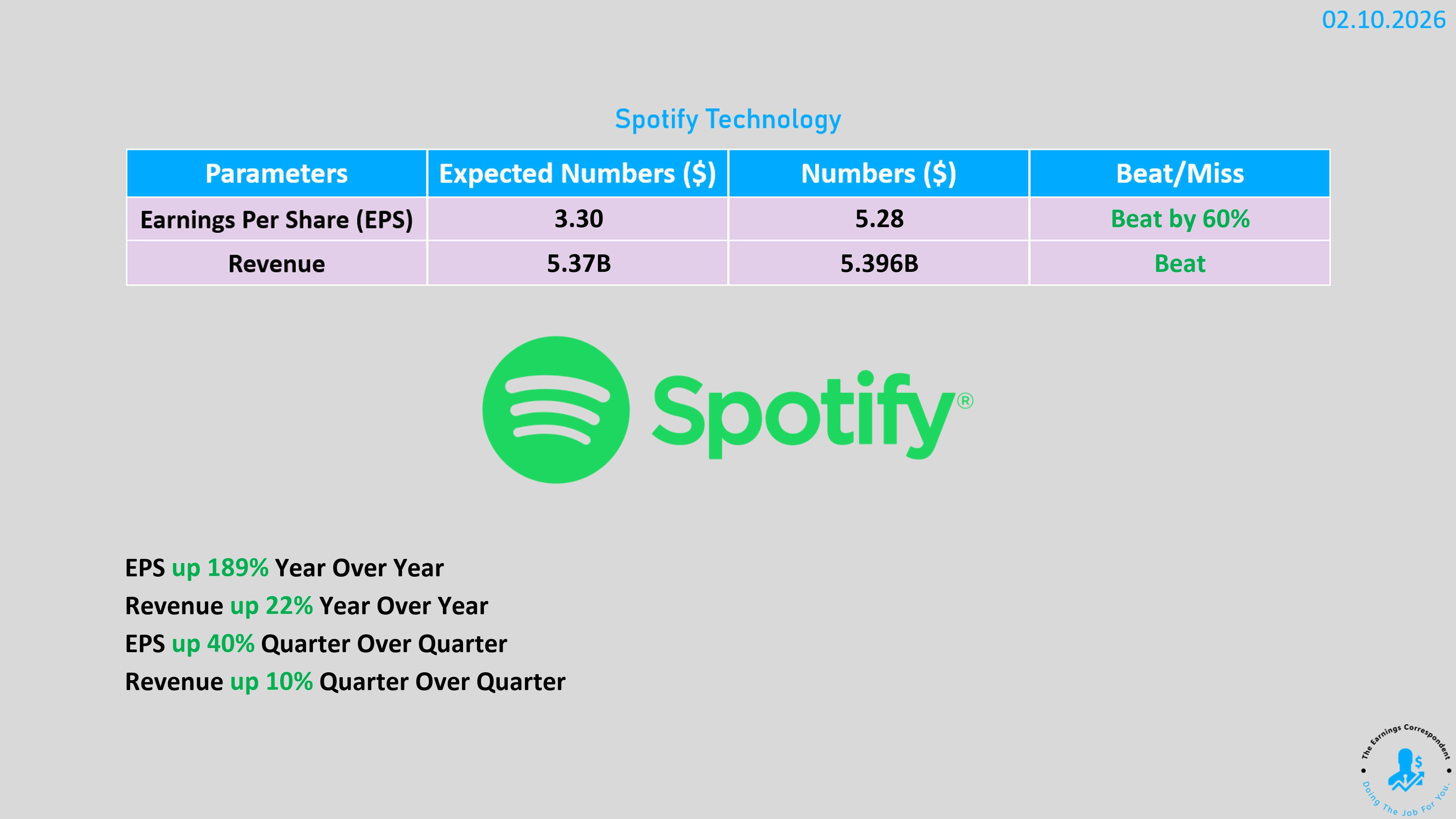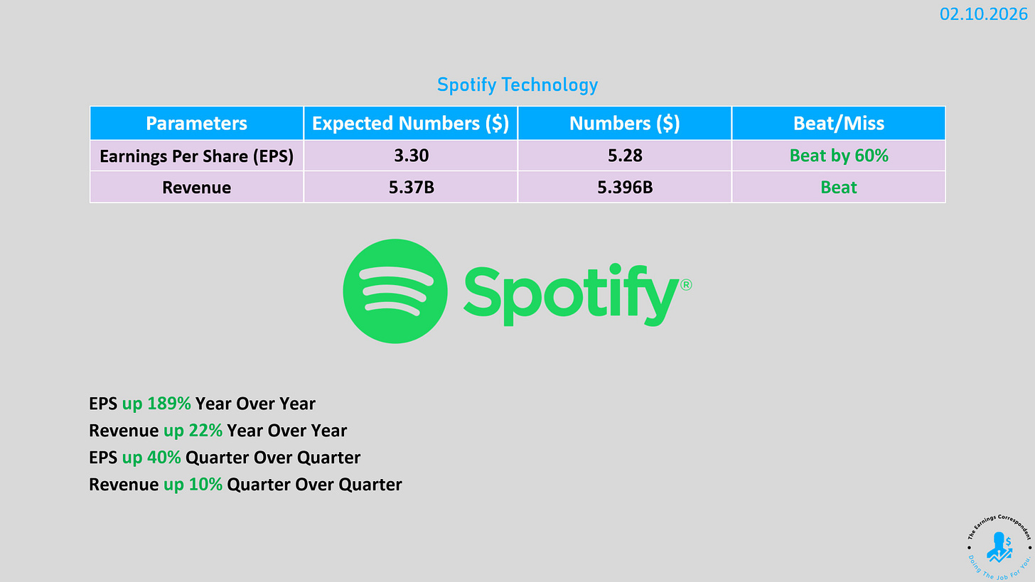 Spotify(SPOT)週二股價暴漲 15%,主因是第四季的用戶增長與獲利表現遠超市場預期 。