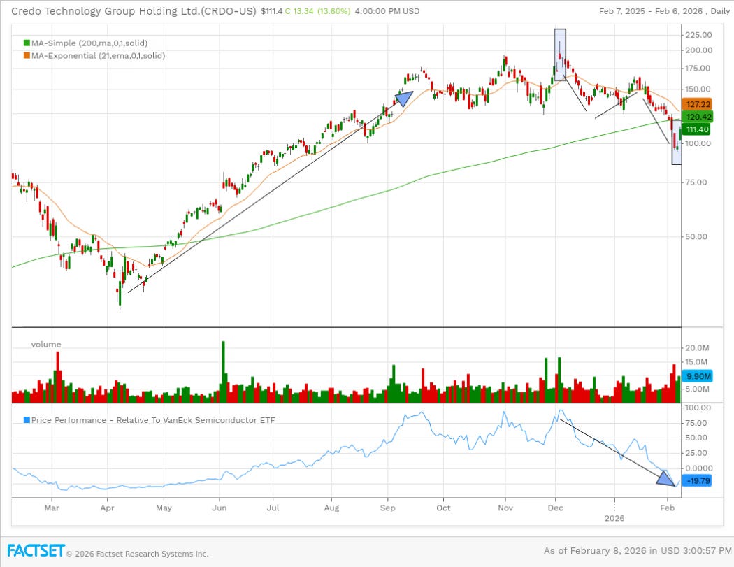 Credo Technology (CRDO):在 $100 價位形成看漲早晨之星,為數據中心連接需求的回升提供進場點。