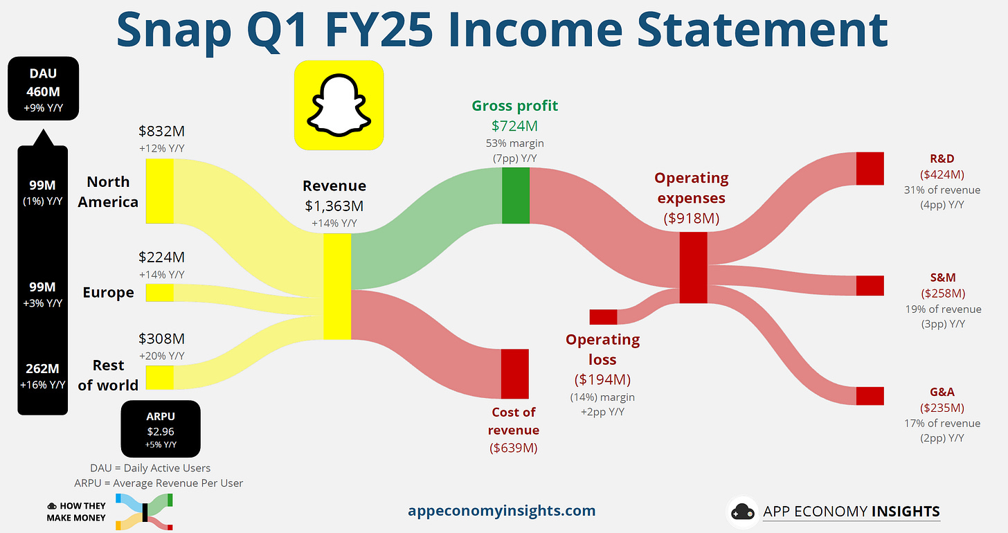 Snap (SNAP):股價跳空大跌 12.4%,公司稱宏觀不確定性加劇,無法提供二季度指引,擔憂廣告業務前景。Snap 透露部分廣告主受美國最低免稅線額政策調整影響。