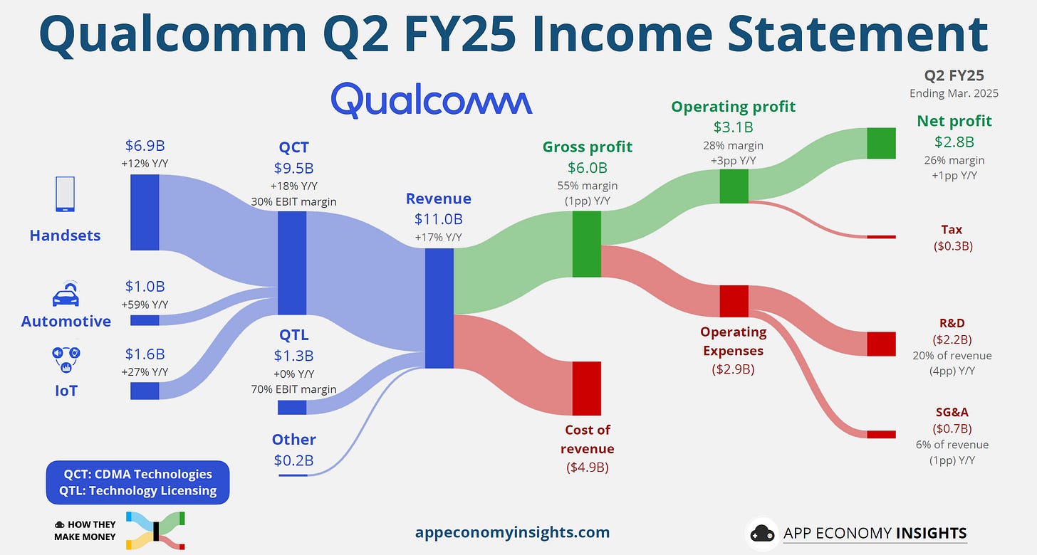 高通 (QCOM):二季度業績超預期,但三季度 EPS 指引未達到預期,股價盤後下跌。