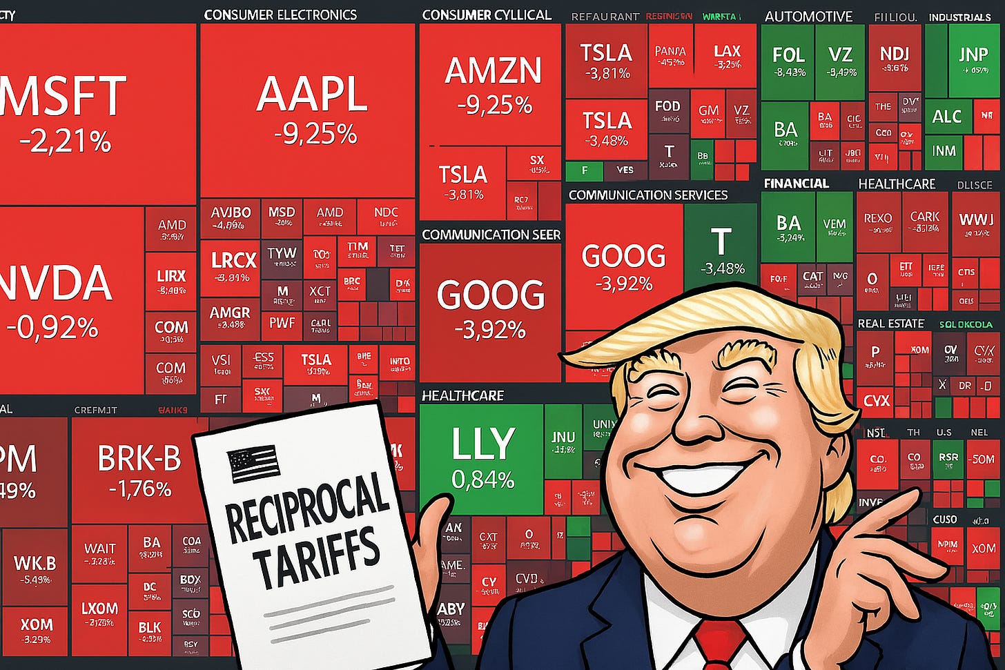 納斯達克下跌 5.97%,道瓊下跌 3.98%。