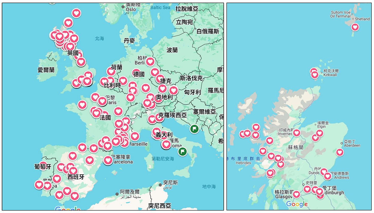 更幸運的是,那個年代的旅行成本相對低廉。B&B、hostel 一晚僅需不到1000台幣,街邊小吃和當地餐廳的價格也十分親民,讓年輕的我得以在有限預算下,盡情探索歐洲各地的風土人情。