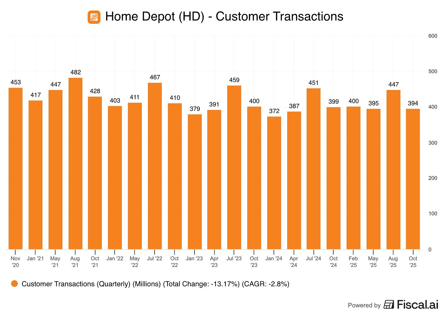 ✅Home Depot(HD)大雷:股價 -6%(S&P 500 最差成分)