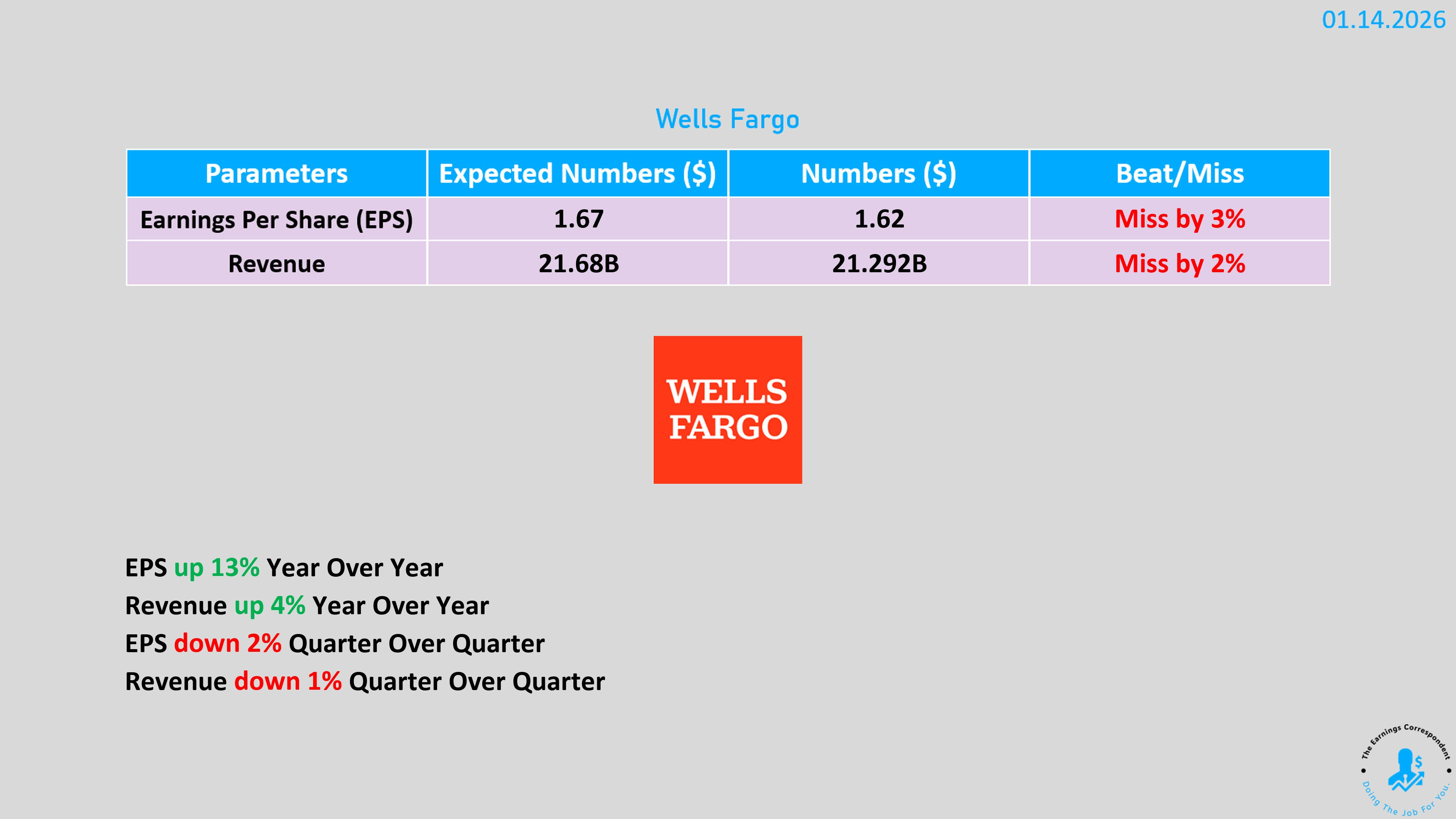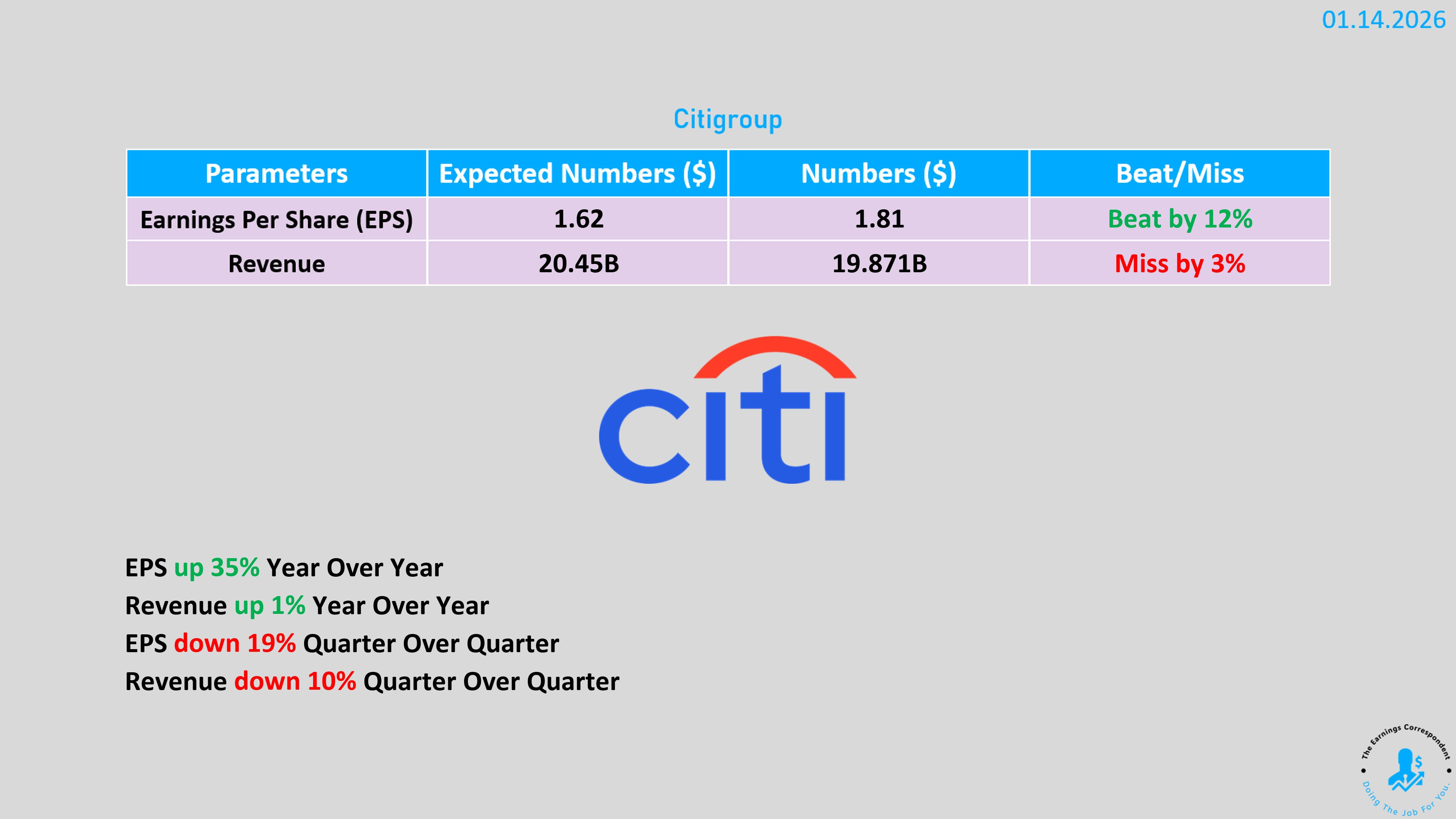 財報表現:Bank of America (BAC) 與 Citigroup (C) 利潤激增,交易活動強勁,業績優於預期 。Wells Fargo (WFC) 業績未達標 。