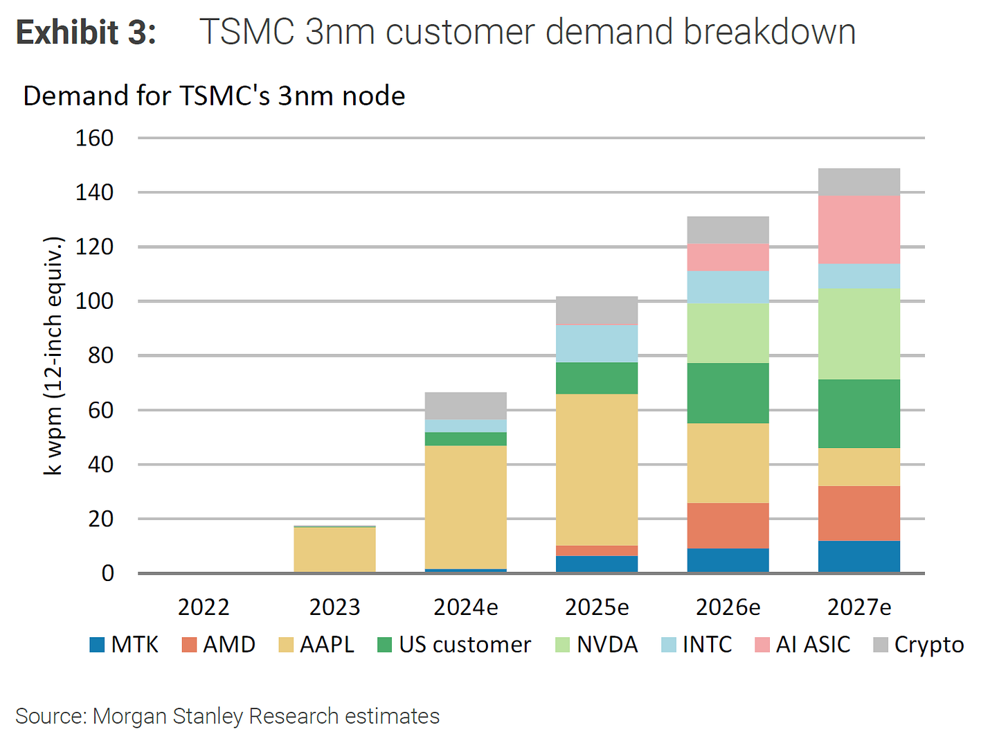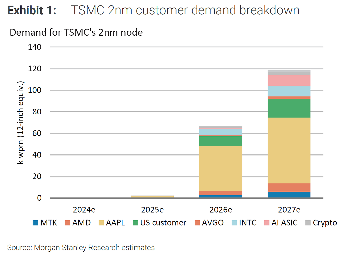 競爭優勢:相較於 Intel 與三星在未來幾年僅可能有 100kwpm 的 2nm 產能,台積電總產能將超過 200kwpm,持續擴大領先優勢 。