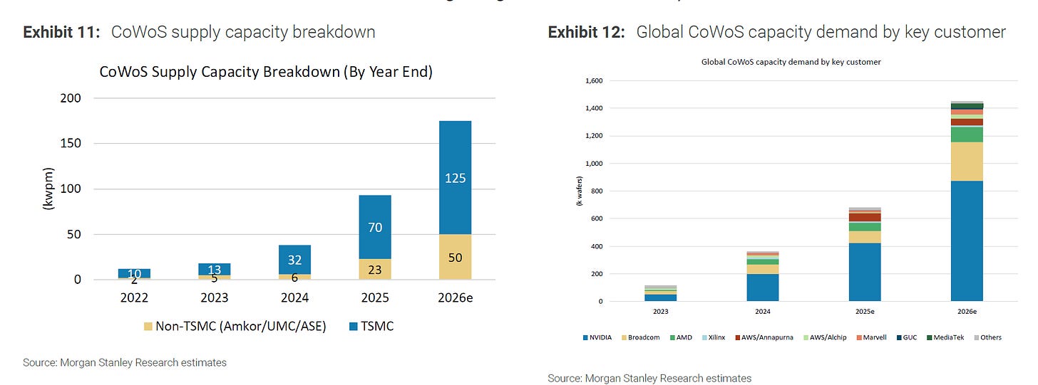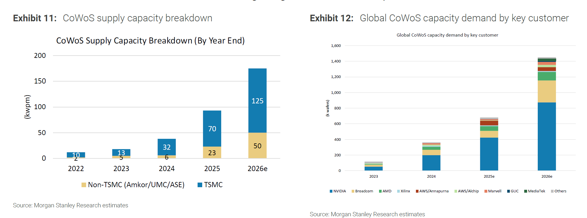 CoWoS 產能:計畫在 2026 年將產能再提升 80%,達到約 125kwpm 。
