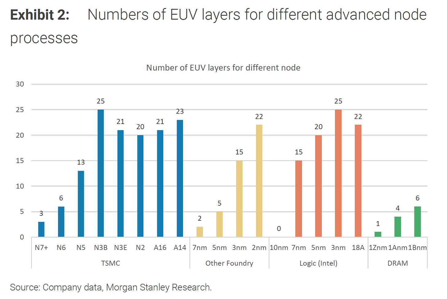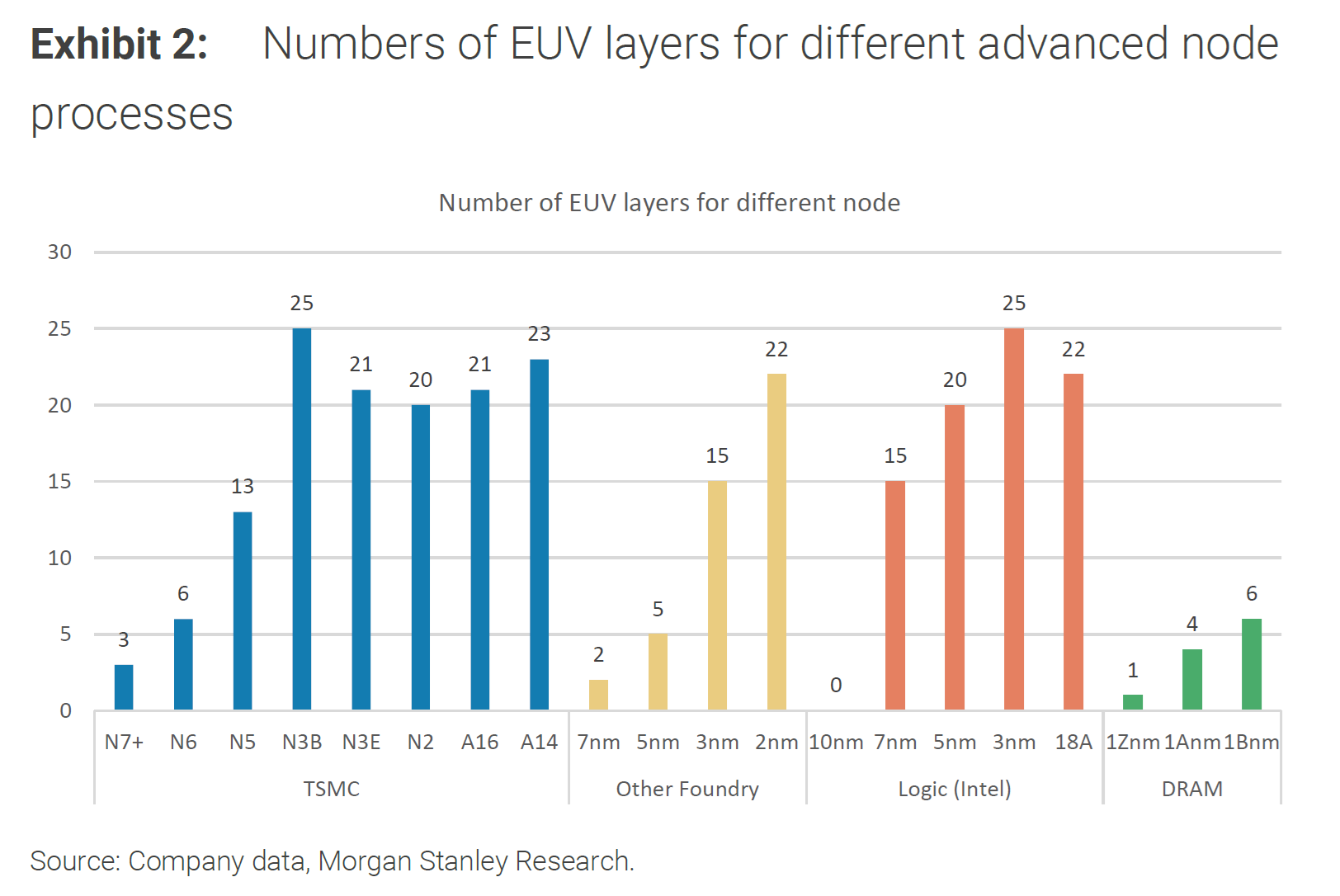 EUV 機台需求:2027 年 EUV 曝光機的交貨量可能增加 50%,以支援 2nm 的龐大需求 。