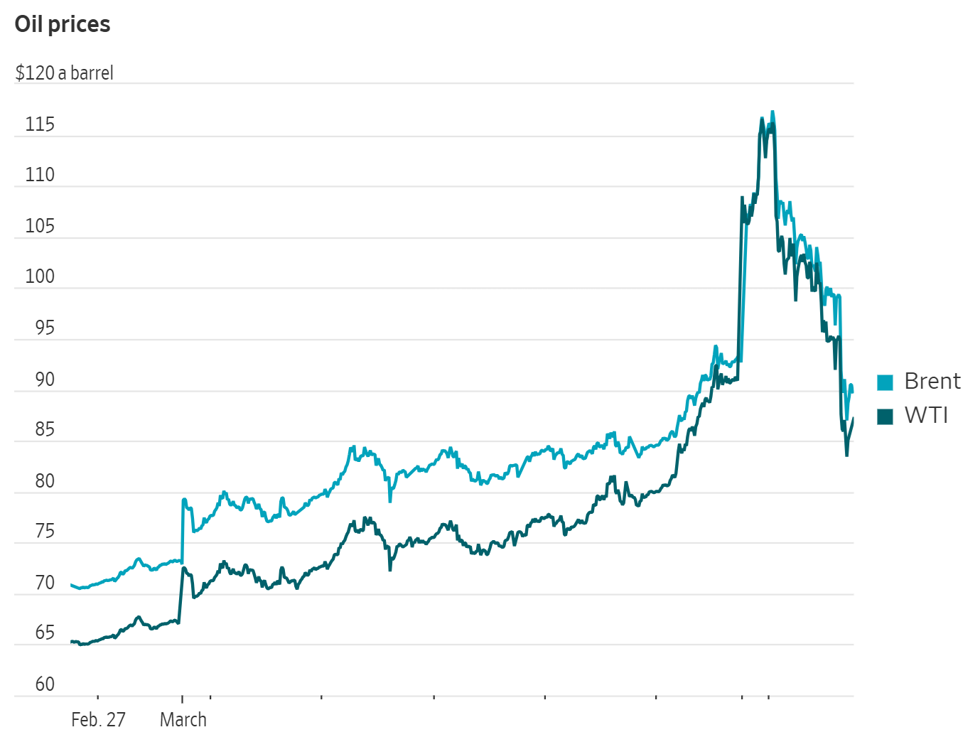油價變動:在 G7 財長會議表示準備釋放戰略石油儲備,以及川普暗示戰爭即將結束後,原油價格從高點暴跌 。WTI 原油一度飆破每桶 119 美元,終場跌至約 85 美元 (跌幅約 6%) 。