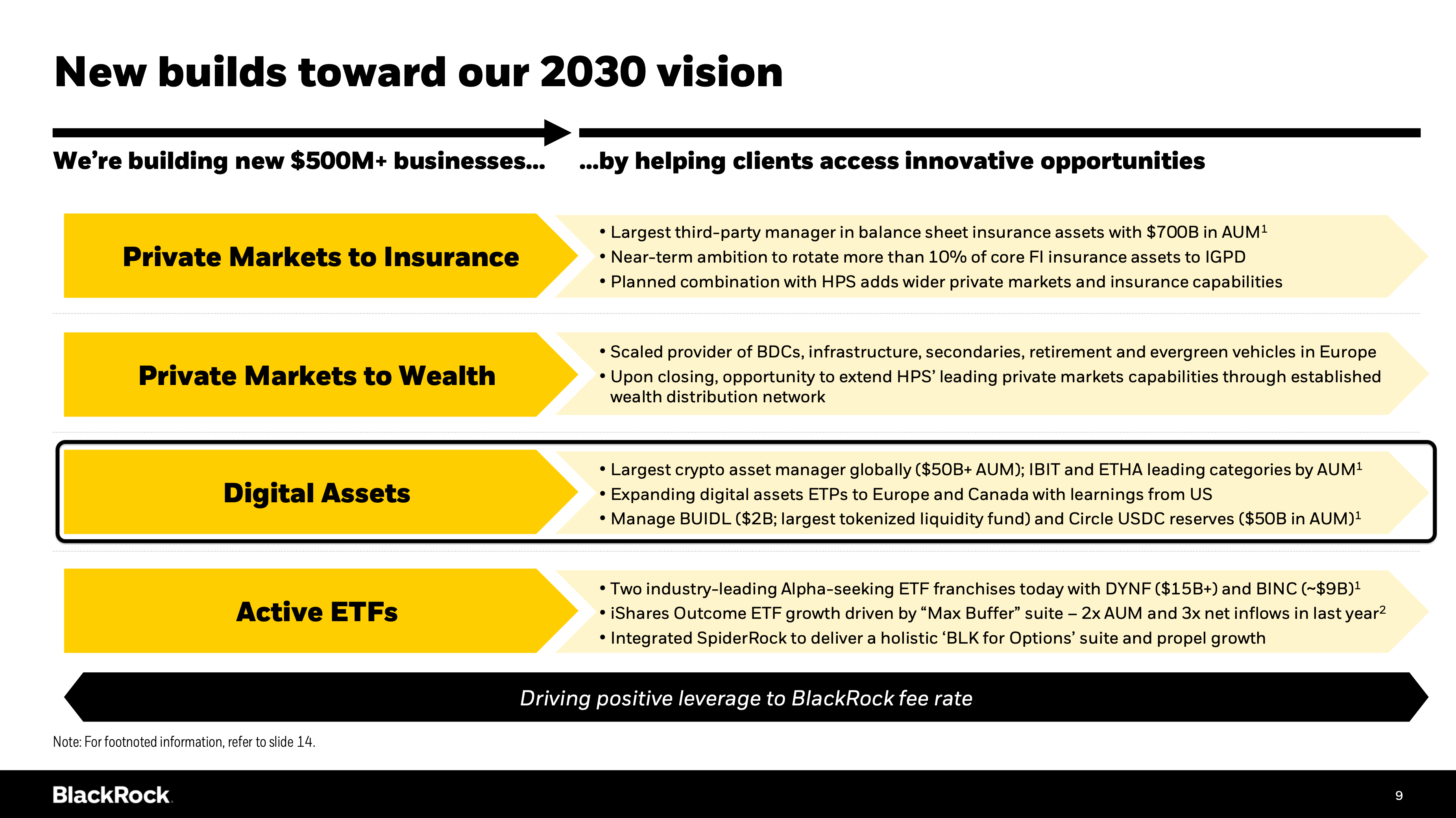 併購 HPS Investment Partners(管理資產 2,200 億美元):提升貝萊德在非公開固定收益與發行平台的能力,為代幣化債務產品奠定制度基礎。