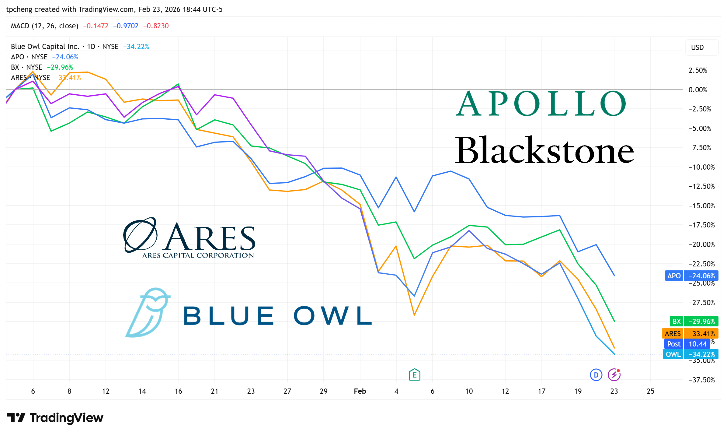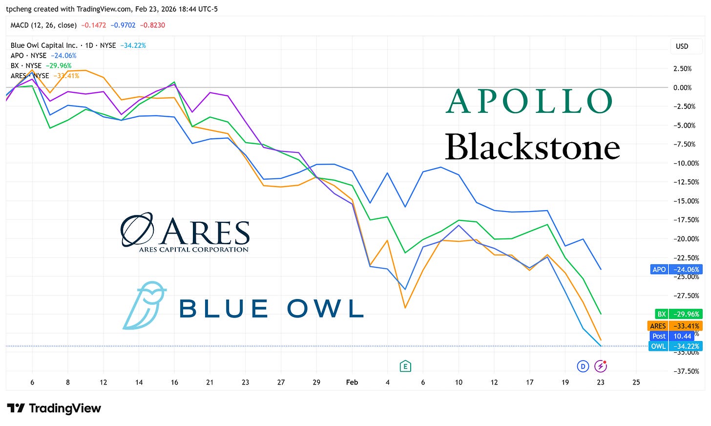 Blue Owl 的流動性壓力:Blue Owl Capital (OWL) 近期因取消投資人每季度贖回的權利,並改為依據未來收益發放分配,引發市場不安 。