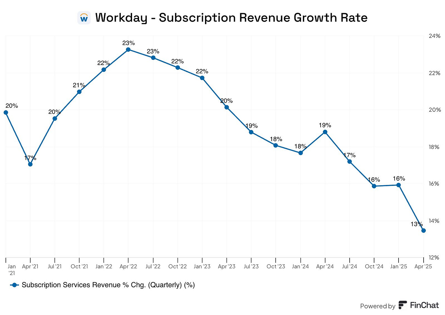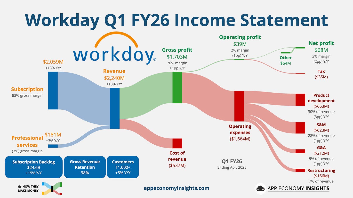 1. Workday財報優於預期,但訂閱成長創新低: