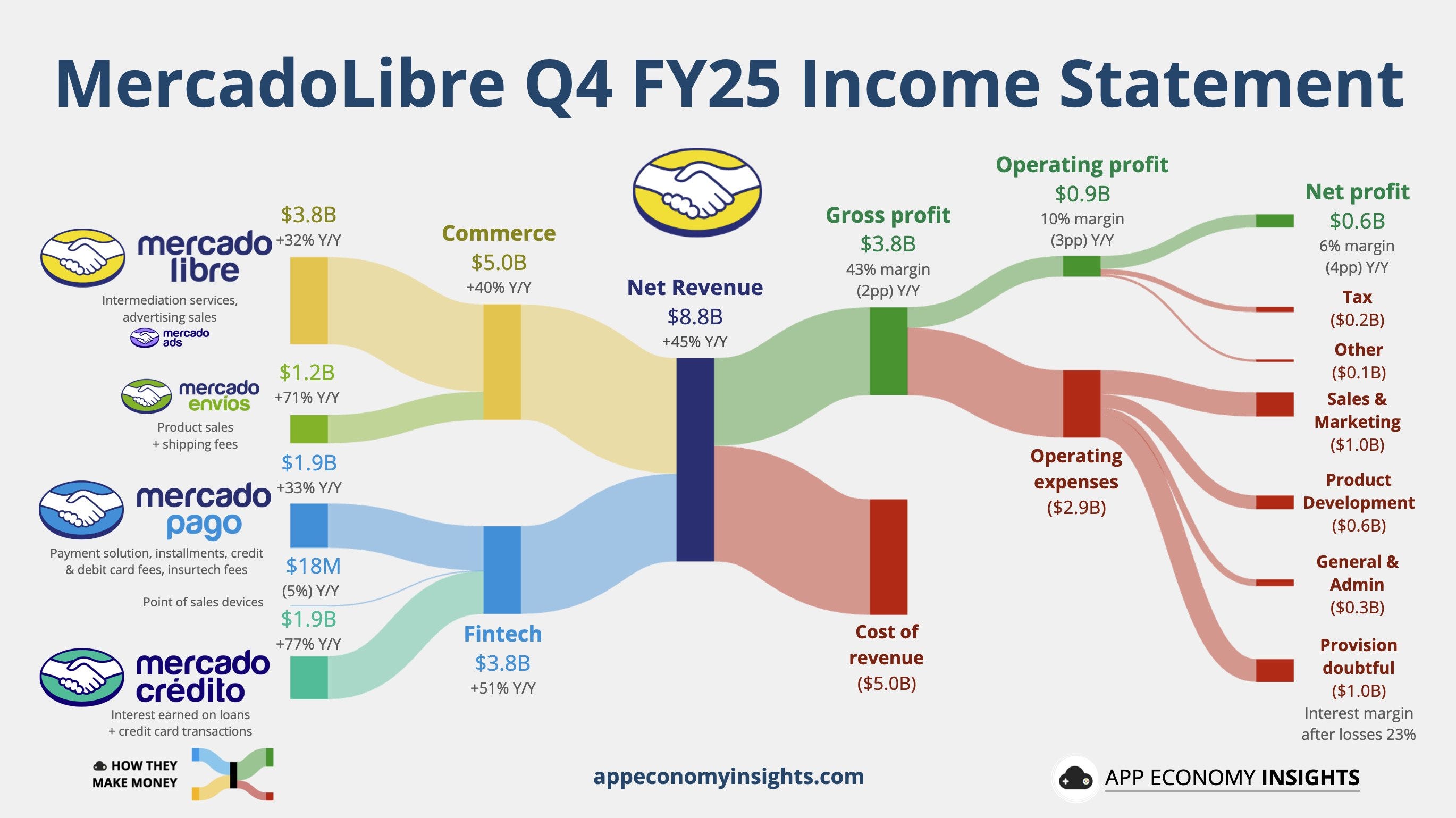 爆炸性增長:Q4 營收達 88 億美元,年增 45% 。其電商平台與金融支付(Mercado Pago)雙雙錄得創紀錄成績,巴西市場表現尤為亮眼 。