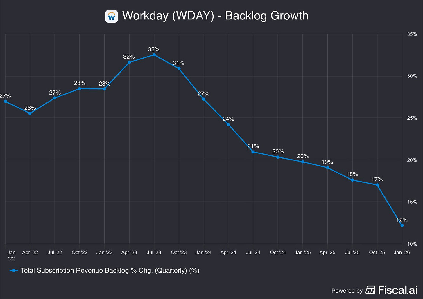 面臨挑戰:Workday 正深陷「創新者困境」,投資人擔心 AI Agent 會取代傳統的 HR 軟體模式 。