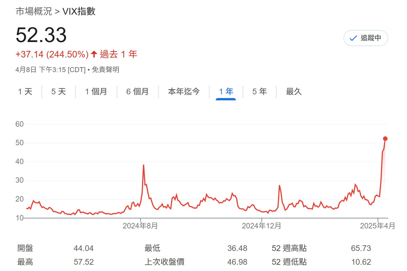 恐慌指數VIX: