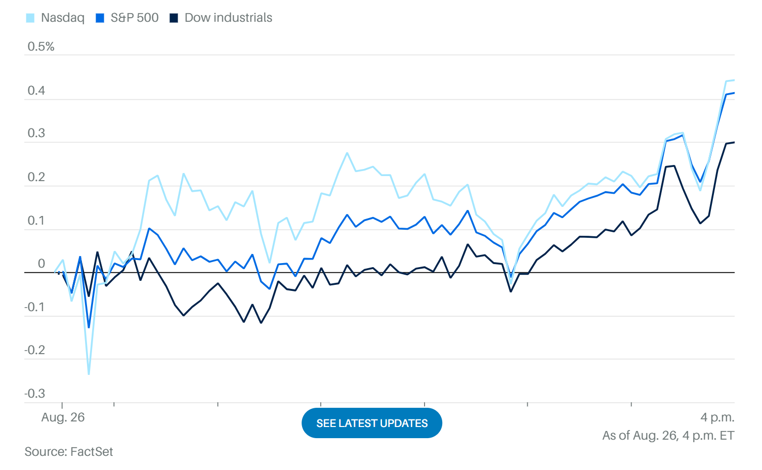 道瓊指數:盤中大致持平,收漲 0.3%。
