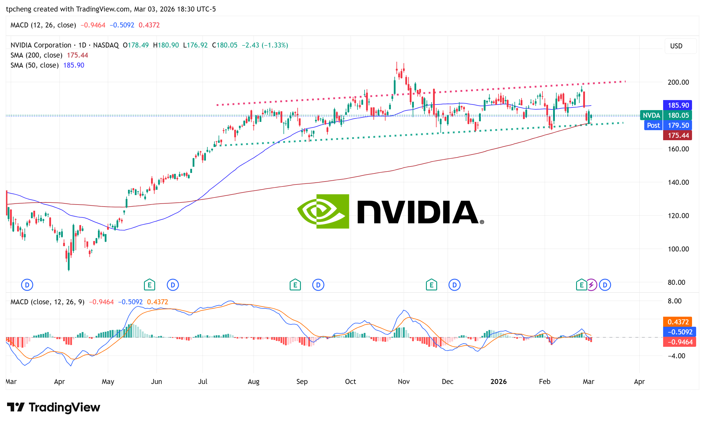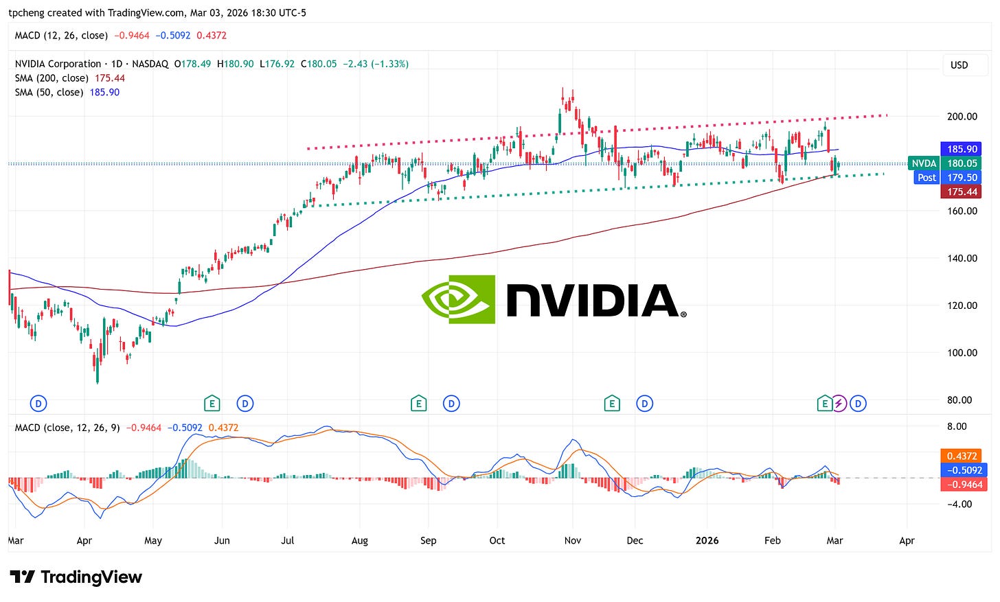 Nvidia (NVDA): 股價下跌 1.3% 。雖然股價回檔,但 Morgan Stanley 重新將 Nvidia 列為首選晶片股 。大摩認為其估值相對較低,且即將舉行的 GTC 大會將化解市場對市佔率流失的疑慮,相信 AI 支出將支撐其多年成長 。