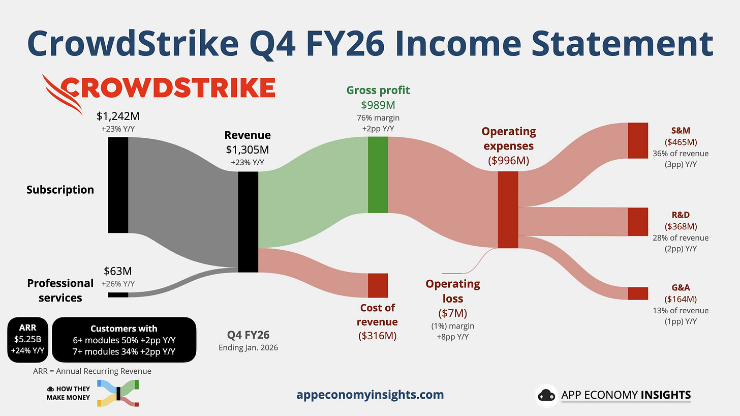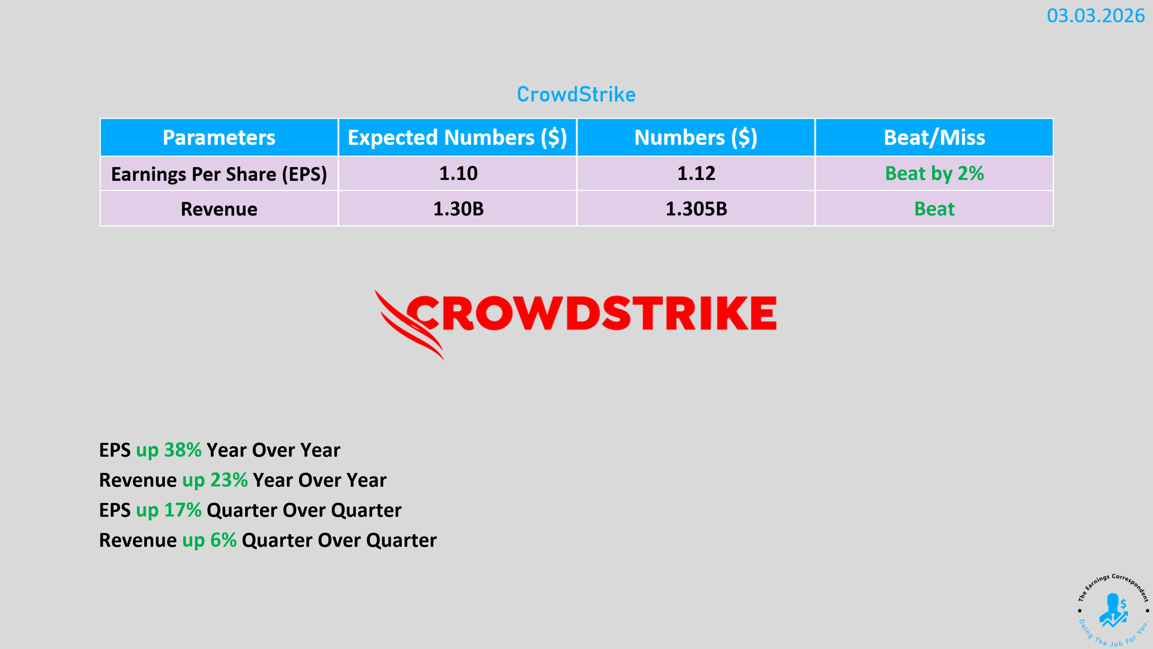 隱憂: 股價在盤後下跌 1%。市場擔憂 AI 技術(如 Anthropic 的新工具)可能讓駭客攻擊更複雜,雖然執行長 George Kurtz 強調 AI 會增加安全需求而非取代之,但訂閱模式的競爭仍讓投資人觀望 。