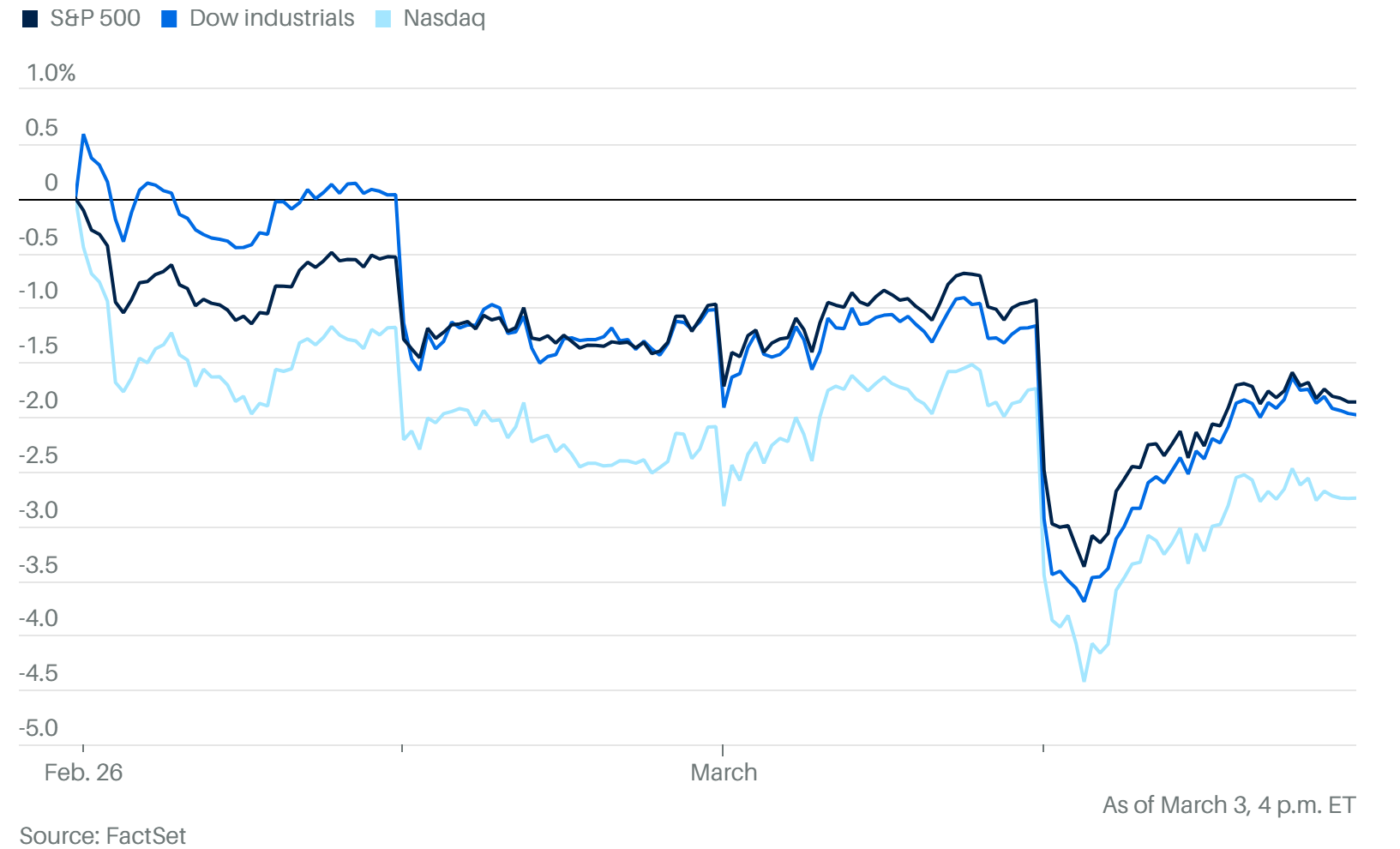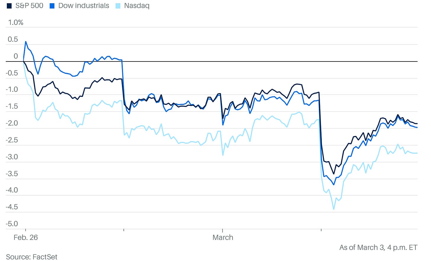 週二的華爾街宛如坐上雲霄飛車。受以色列與美國對伊朗發動新一輪空襲影響,市場對區域戰爭長期化的恐懼一度引發恐慌性拋售,道瓊工業指數(^DJI)最深重挫達 1,200 點 。然而,隨著川普總統宣布美國海軍將為油輪提供護航,市場情緒在尾盤顯著回溫,三大指數最終雖然收低,但已收復大半失土 。