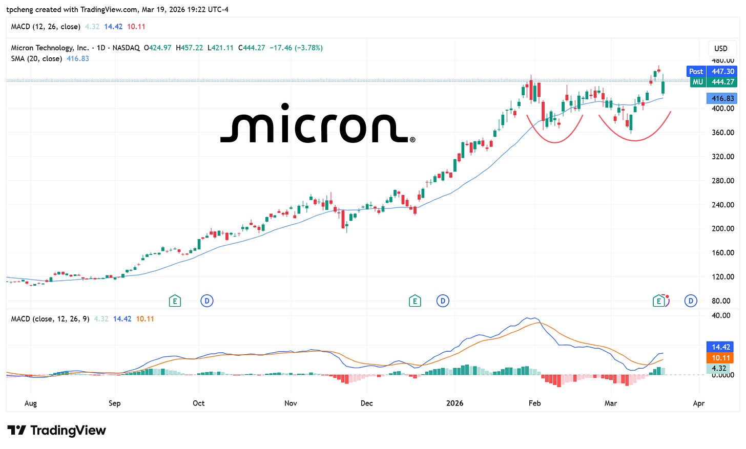 美光 (MU):即便第二財季營收成長近三倍至 238.6 億美元,且 EPS 12.20 美元遠超預期的 9.25 美元,股價今日仍收跌近 4% 。分析師認為市場擔心其獲利的可持續性,以及高昂的 AI 資本支出可能損及報酬率 。