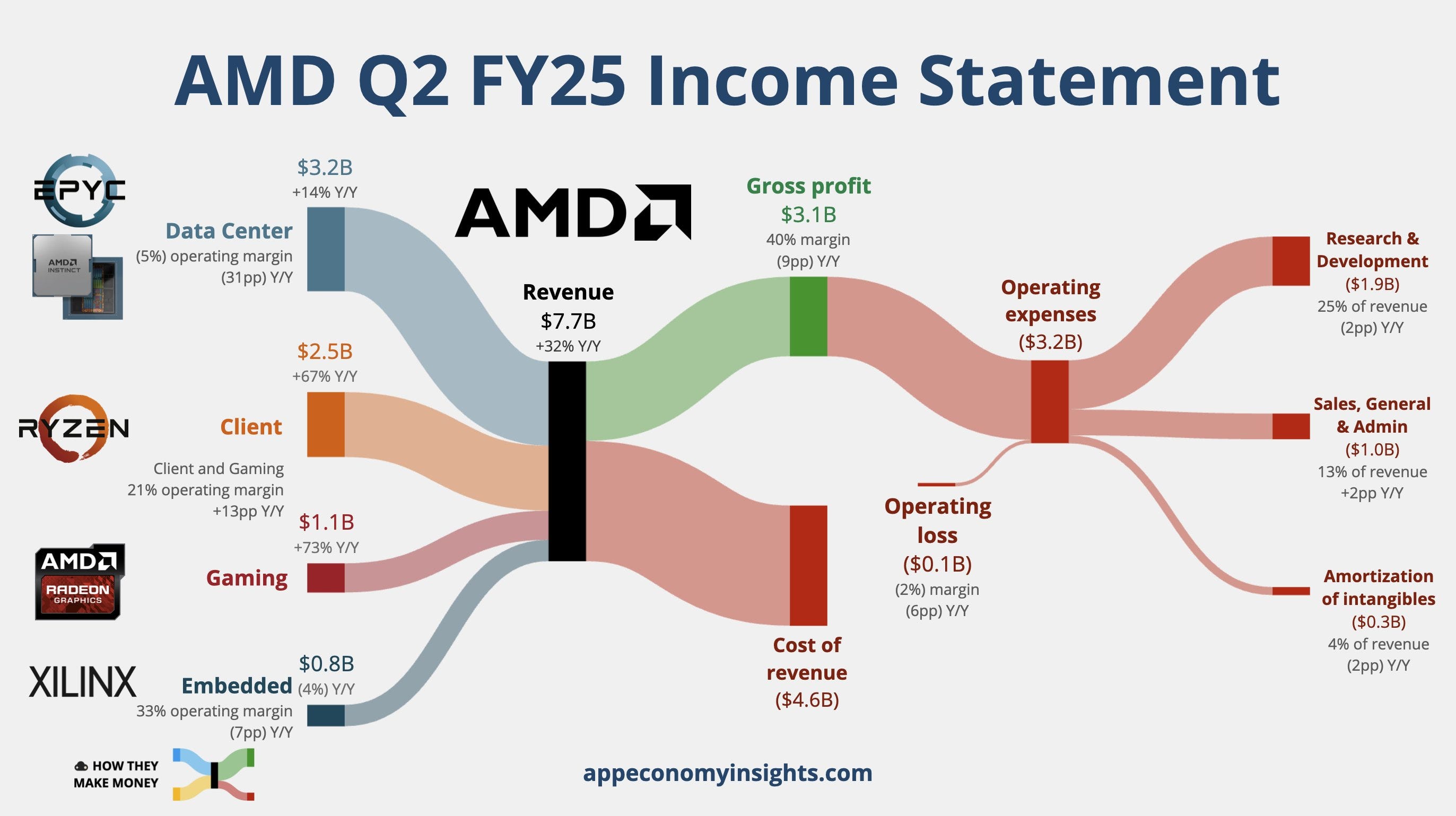AMD Q2財報:EPS $0.48 低於預期($0.49);營收 $76億 優於預期($74億)。
