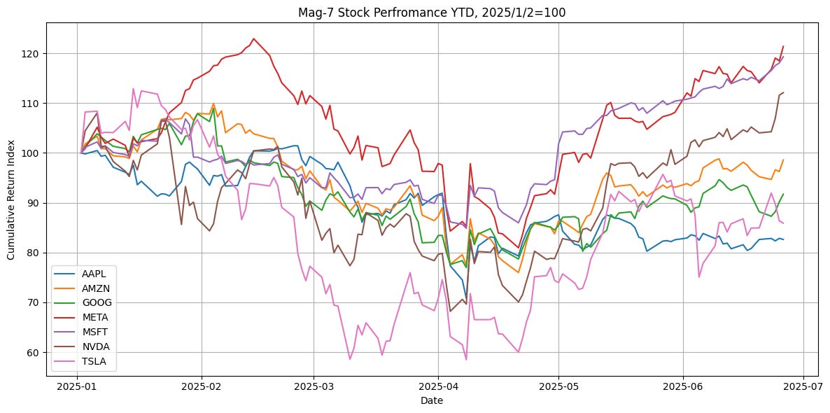 雖然淨利潤亮眼(谷歌1110億美元、蘋果970億),但股價年初至今仍表現落後。