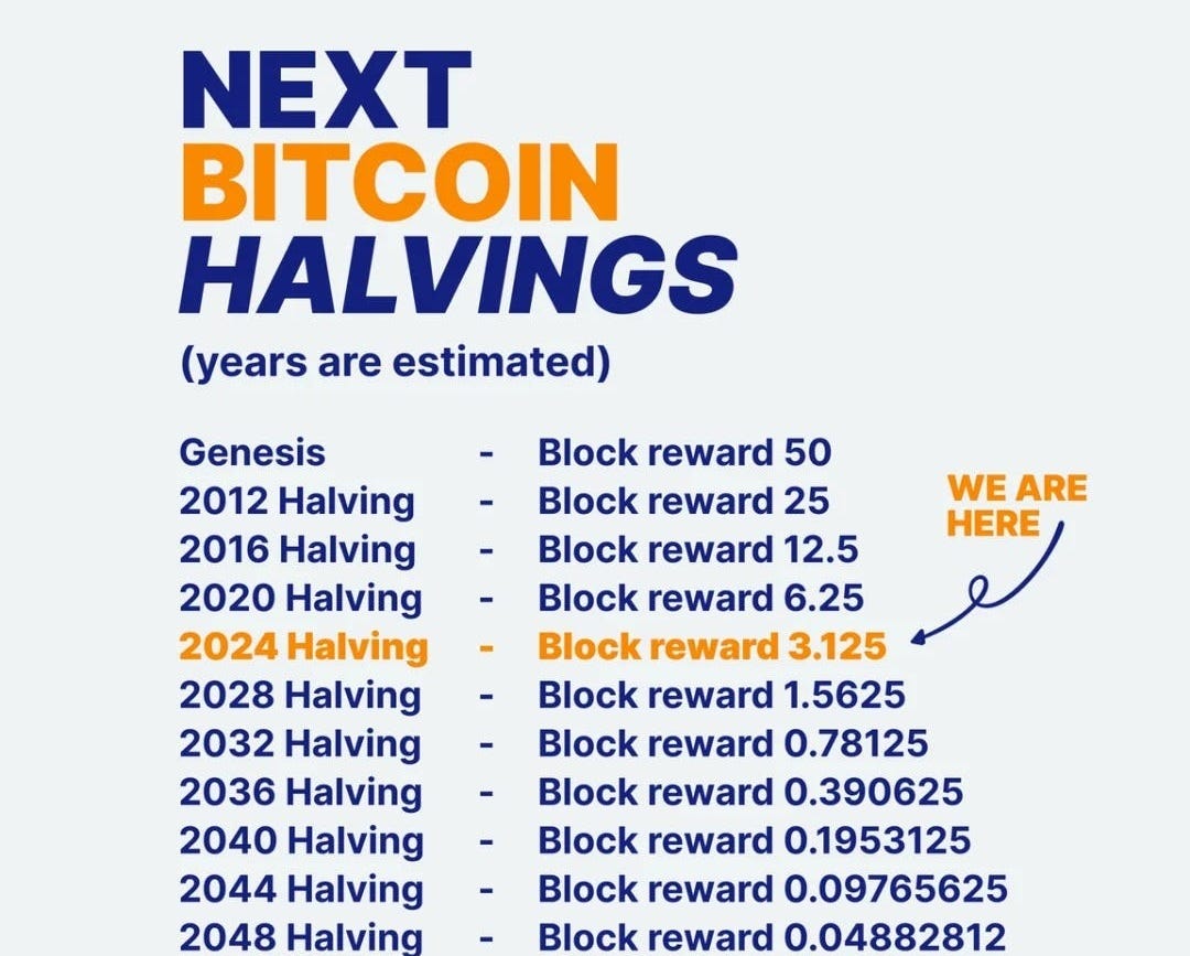 2024年: 第四次減半,獎勵降至3.125枚(我們目前正處於這個階段)。