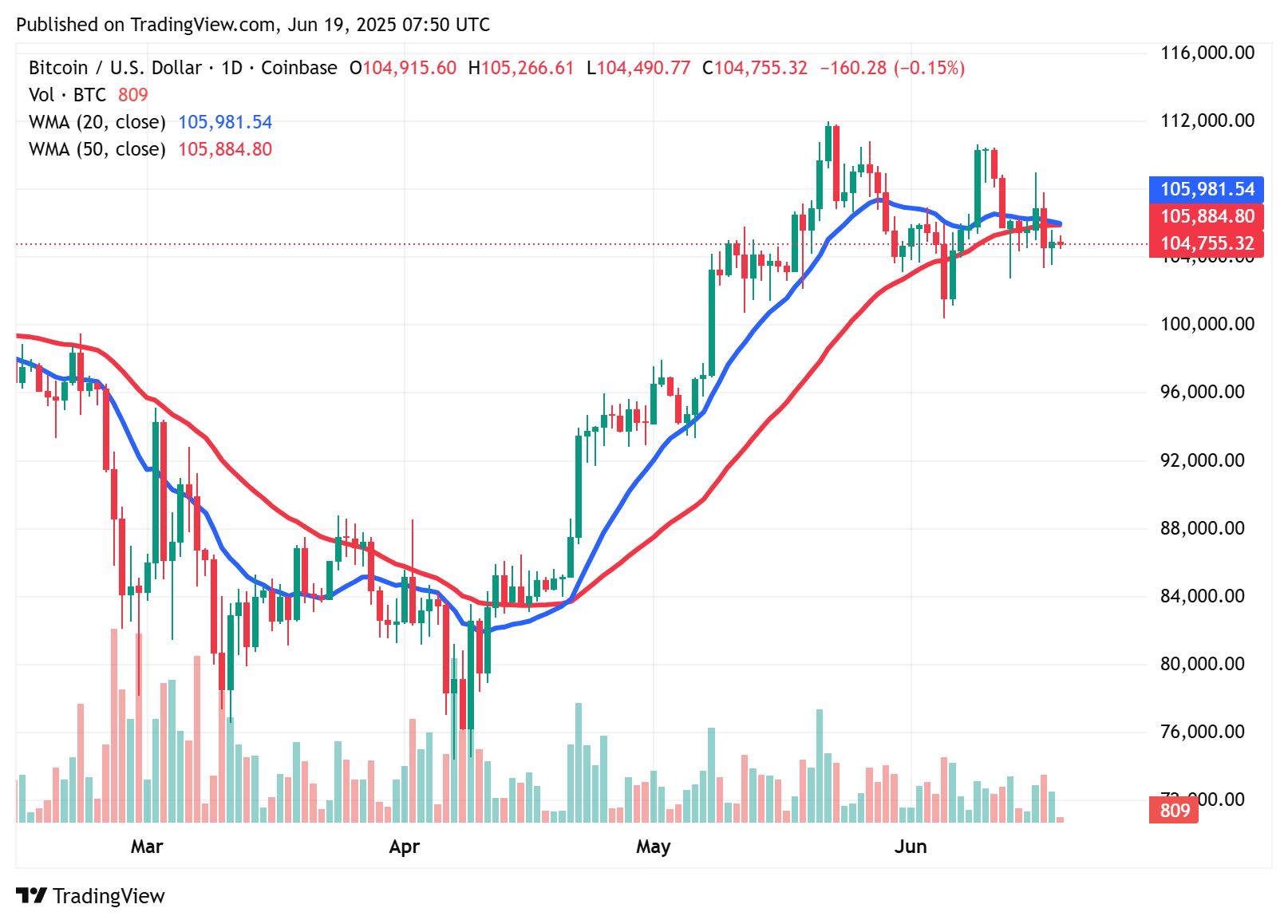 截至 6月19日,比特幣價格約在104,000至105,000美元區間波動。根據最新的市場數據和分析(截至2025年6月19日),$100,000 這個行權價的 PUT/CALL Ratio 確實顯示出市場對短期下跌的擔憂情緒。