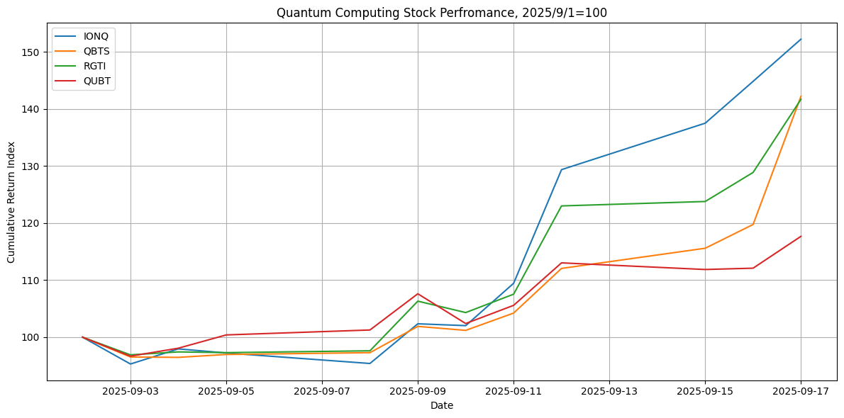 量子計算:政策+併購題材帶動族群上行(IONQ、QBTS、RGTI、QUBT)。