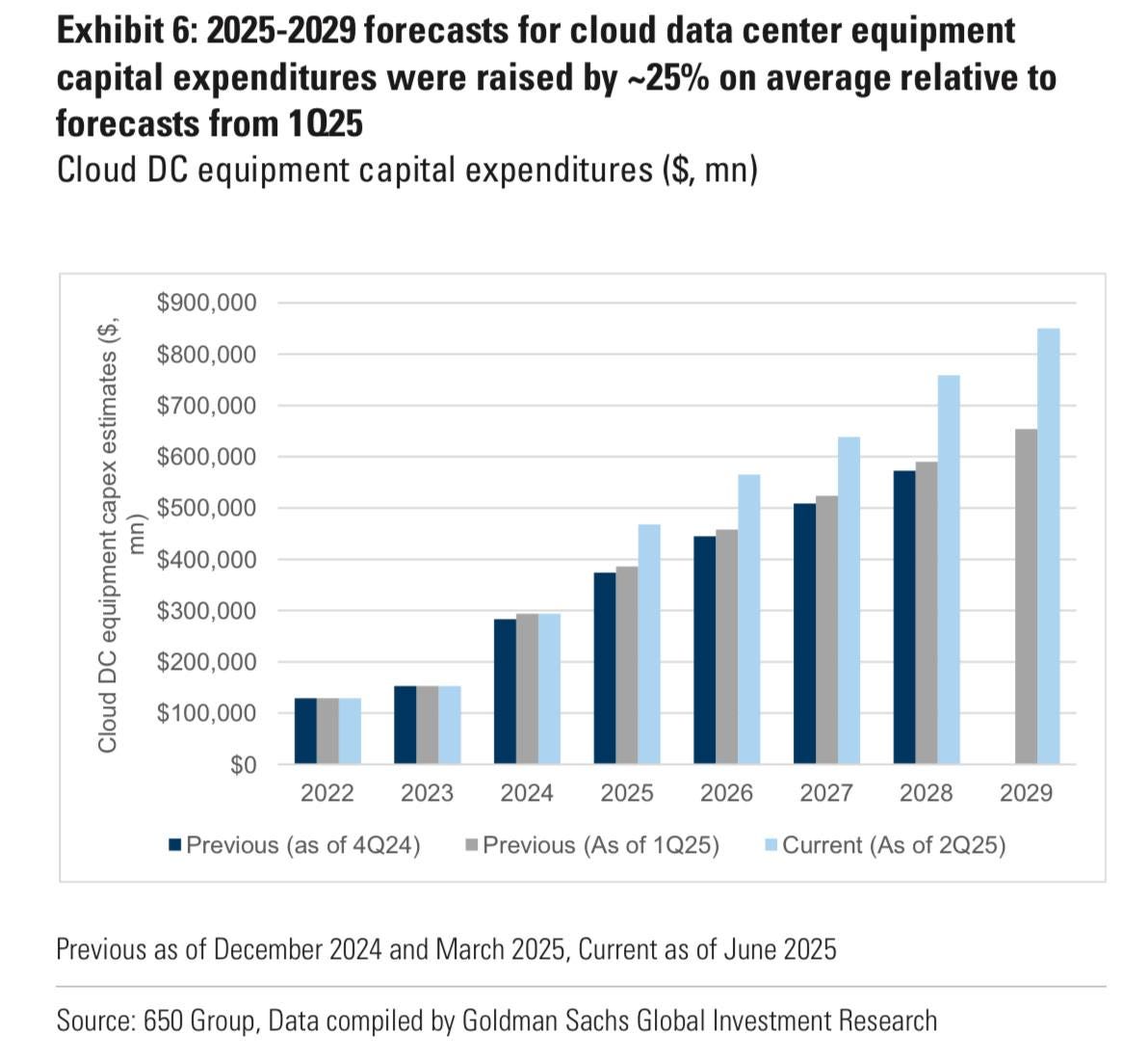 高盛將 2029 年AI 伺服器市場預測從 3860 億美元上修至 5810 億美元,CAGR 38%。