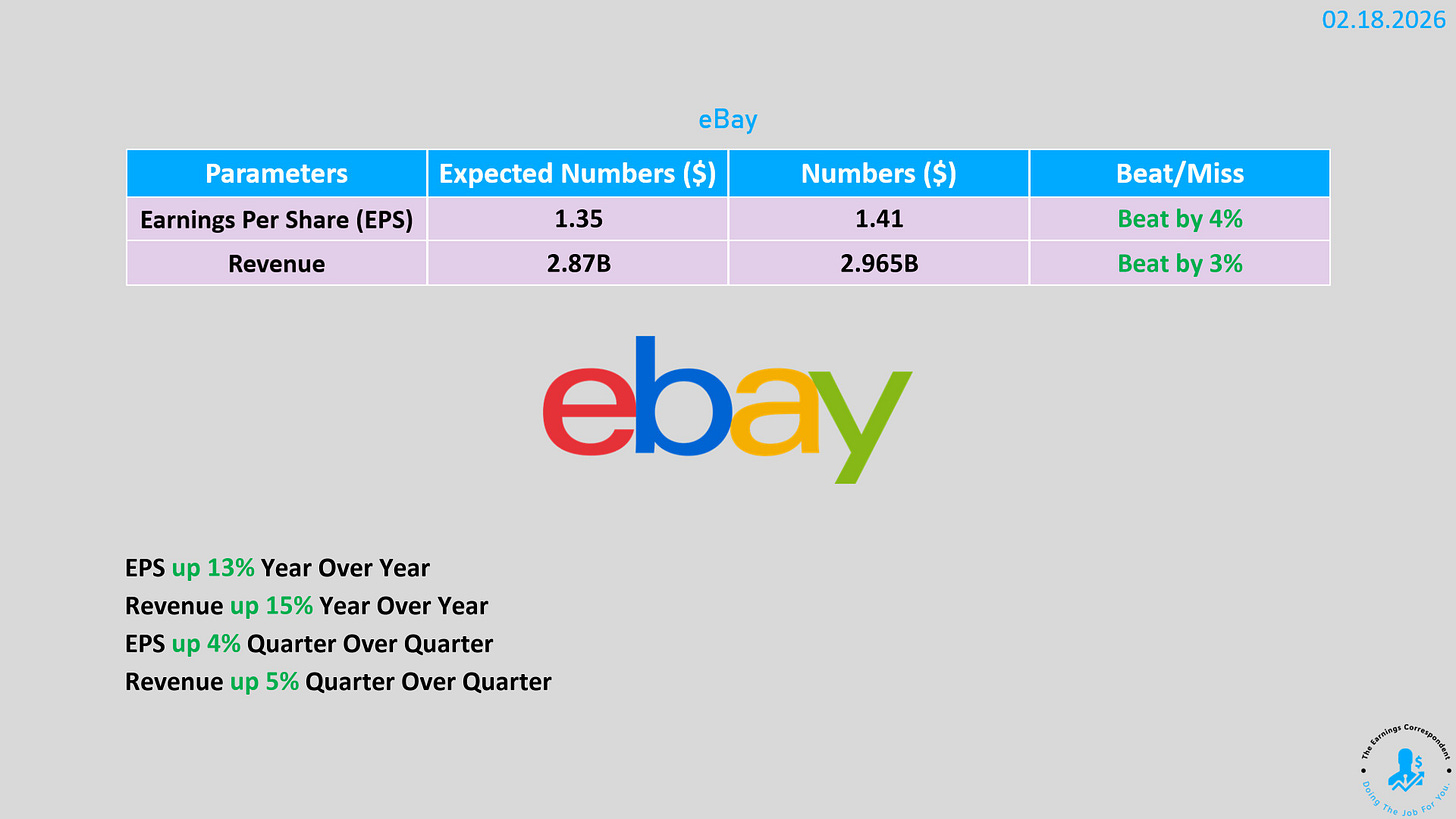 eBay:預計 Q1 營收高於預期,並宣佈以 12 億美元收購時尚平台 Depop,拓展年輕消費者市場,股價盤後上漲 7% 。