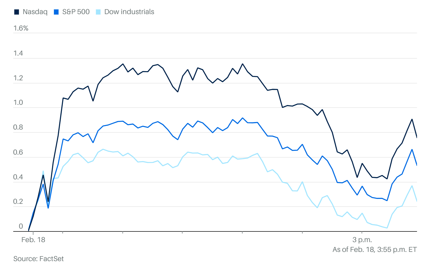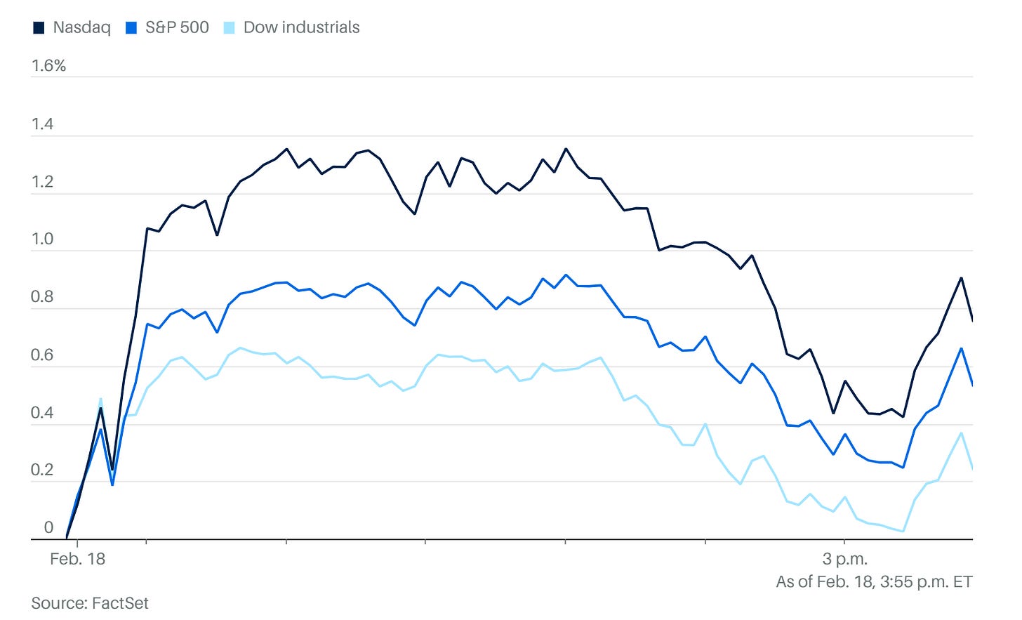 今日(2/18)市場的走勢在 Fed 紀要公佈後發生了質變,儘管三大指數最終維持紅盤,但最後 5 分鐘的跳水已為明日(2/19)的盤面埋下了極大的變數 。