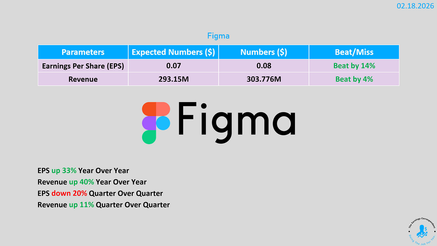 Figma:盤後公佈財報,營收同比增長 40%,且 2026 財年指引強勁,股價盤後大漲 。