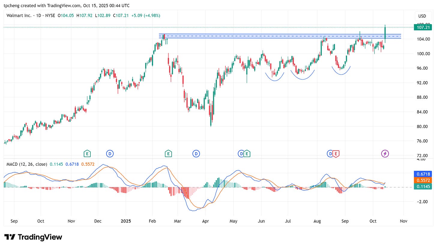 沃爾瑪(WMT)漲近5%,與OpenAI合作推出ChatGPT購物服務,創歷史新高。