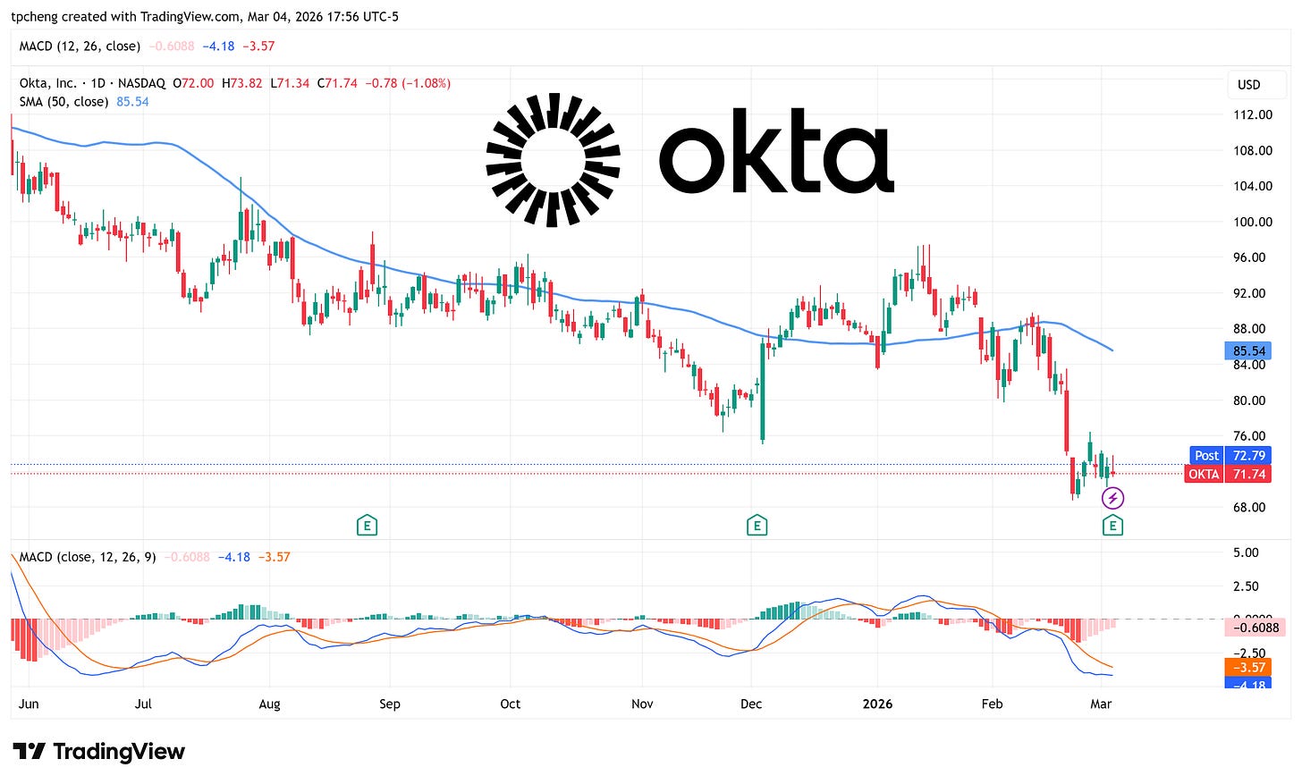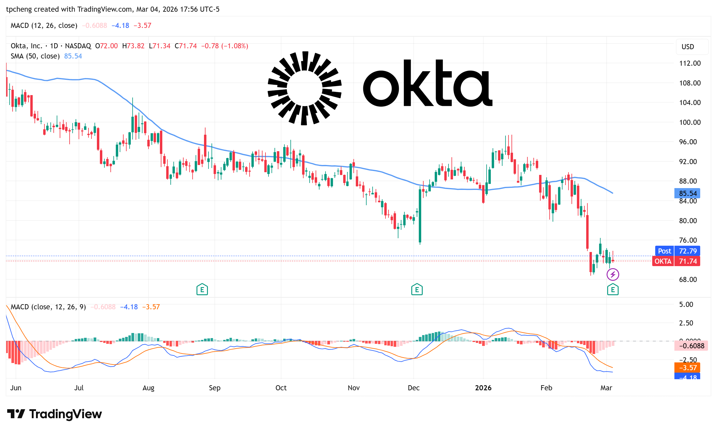 展望與表現:Okta 預計 Q1 營收成長僅 9%,這是其 2017 年上市以來首次出現個位數增長,反映出企業因經濟不確定性而延後 IT 支出的現狀 。受此影響,股價在盤後下跌約 1% 。