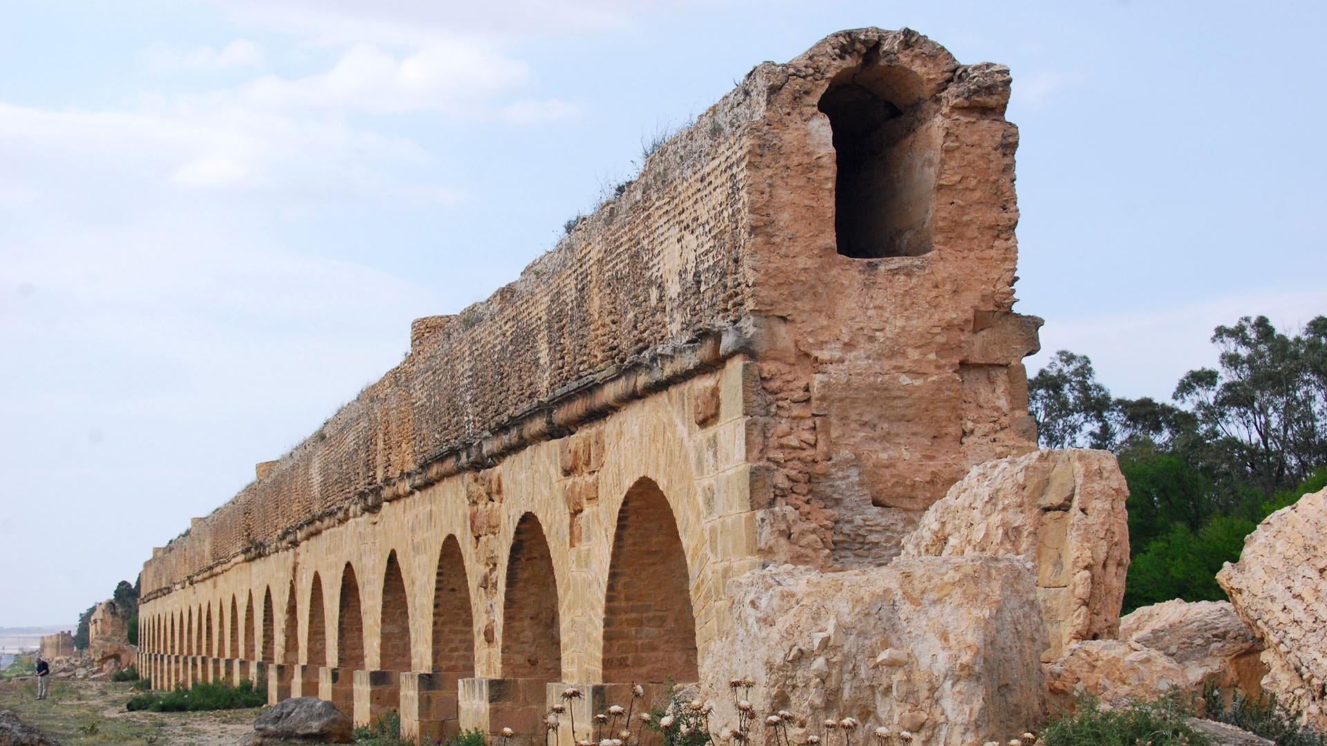 又稱哈德良水道橋,建於2世紀,引水80多英里至迦太基。部分修復後,遺跡多為廢墟,最精美部分位於穆罕默迪耶村南。
