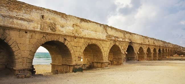 水道橋建於公元前22年左右,引Shuni水源至凱撒利亞,保存完好的海灘段風景宜人。