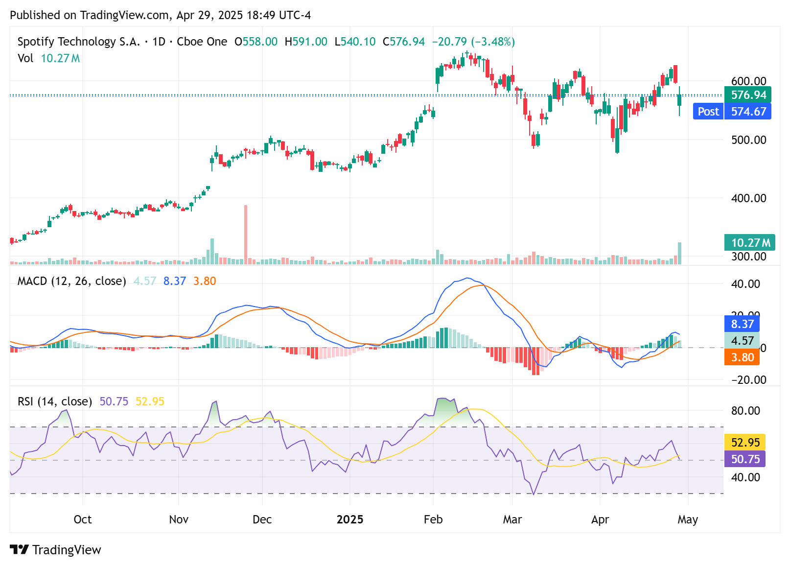 Spotify:營收與用戶略低預期,財測疲弱引發獲利了結。