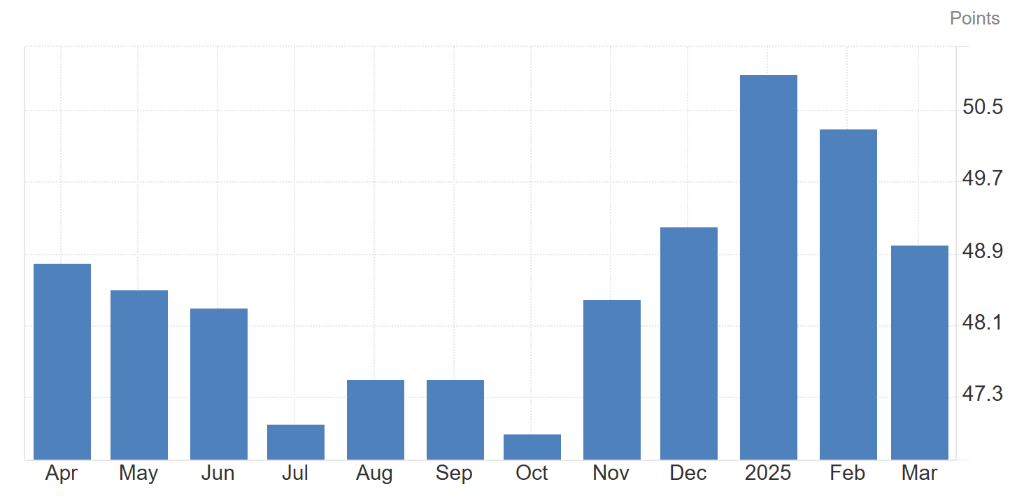 3月製造業萎縮、價格上漲,主要因企業提前下單避關稅。