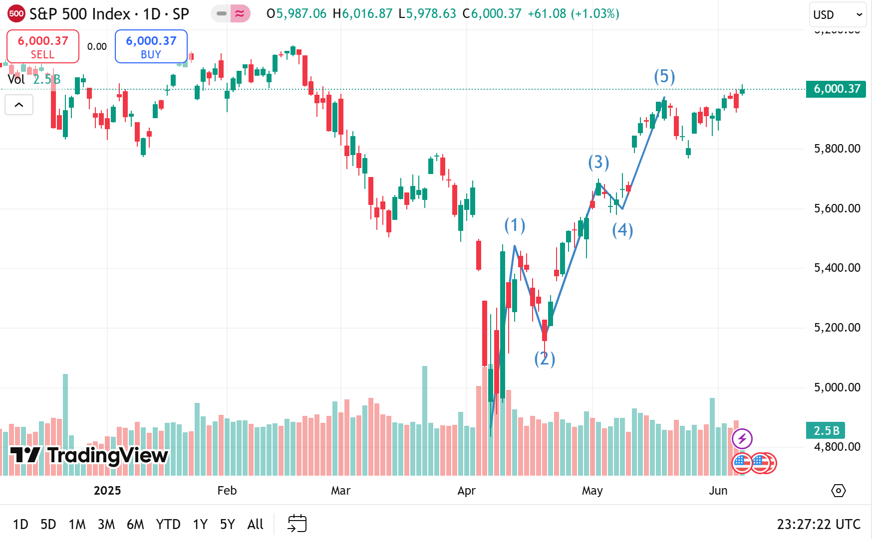 三大指數全面上漲超1%,標普500盤中突破6000點,最高至6017。