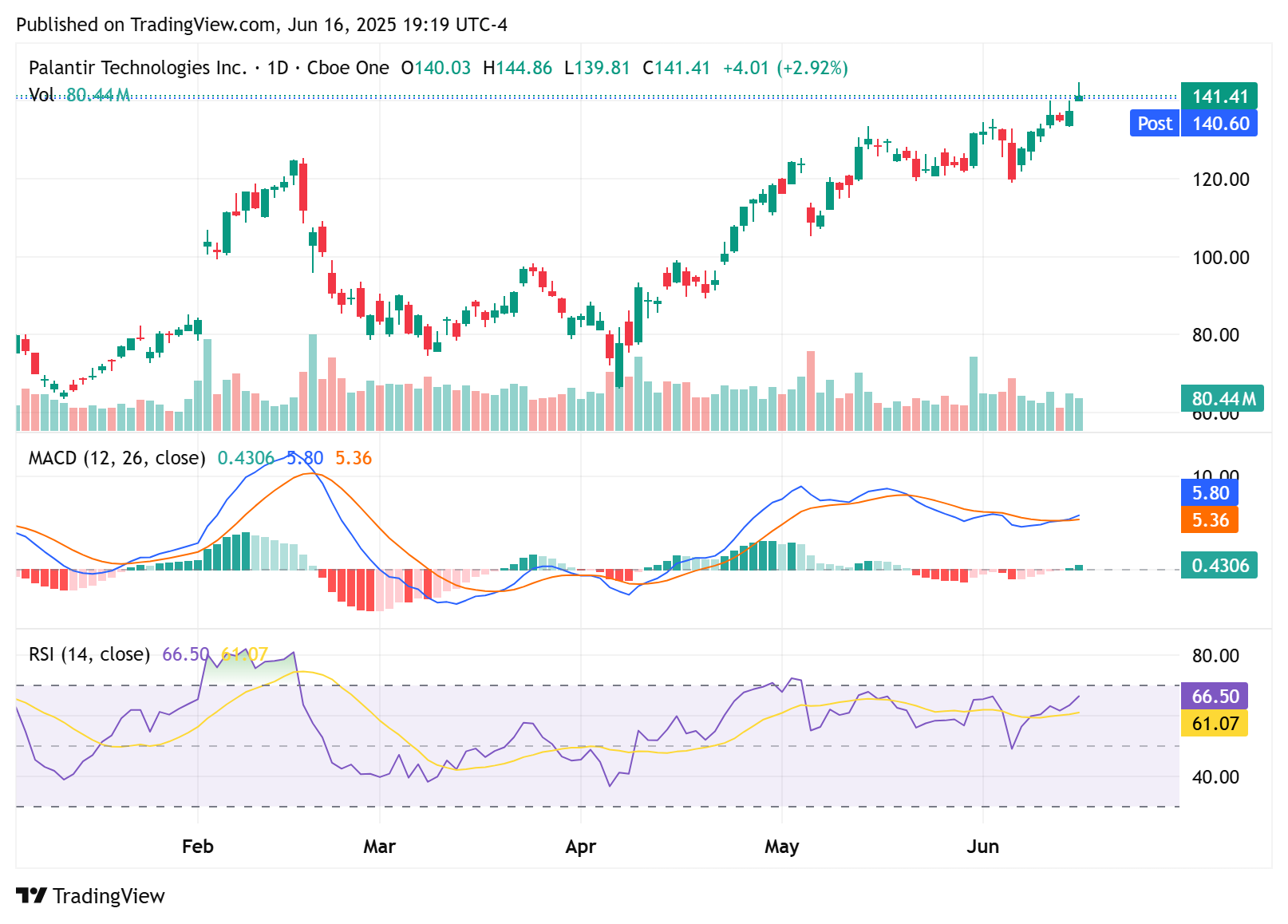 技術指標顯示回調風險,但股價仍持續上漲,成為類似 Tesla 的信仰股。