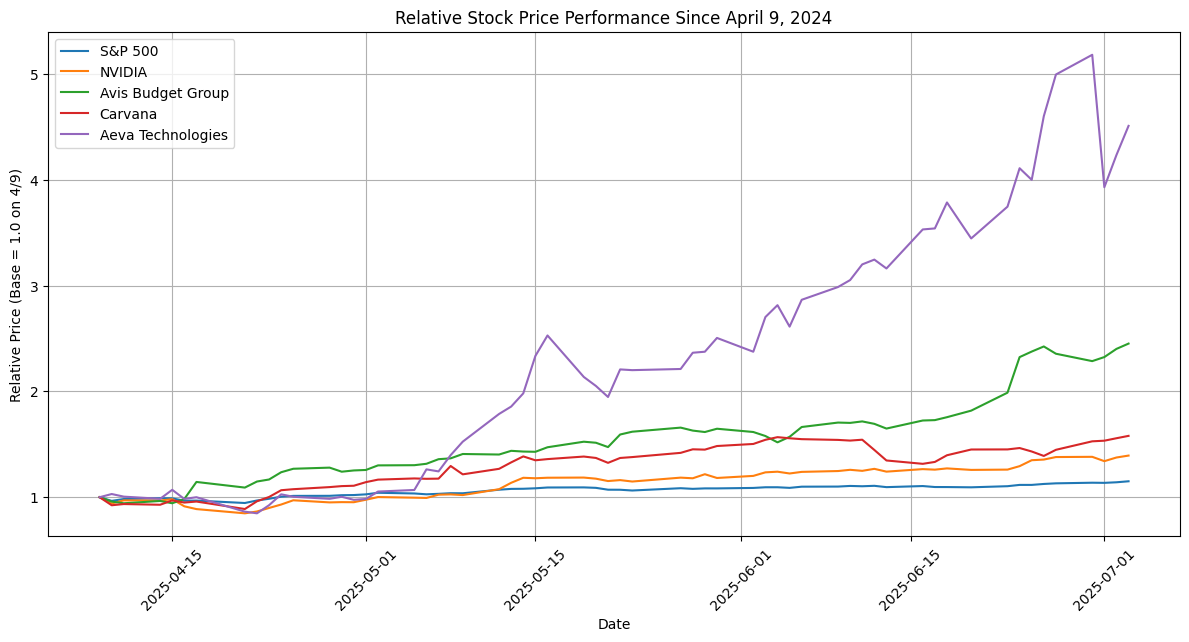 Avis、Carvana、Aeva 等曾被散戶熱捧的迷因股再次飛漲,尤以Aeva最為誇張,自4月以來暴漲457%,儘管該公司尚未產生實質營收。這類股票的崛起,反映出市場風險胃納正在迅速回升。