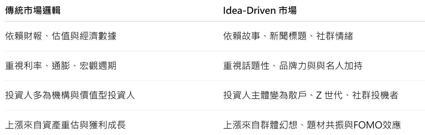 💡投資人若想在這種環境中勝出,必須學會觀察「群體心理」與「敘事力量」,而非只看財報與模型。